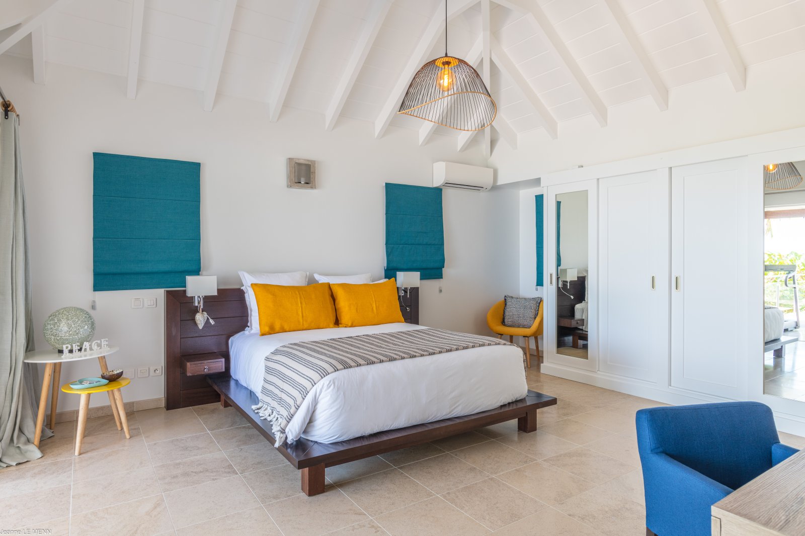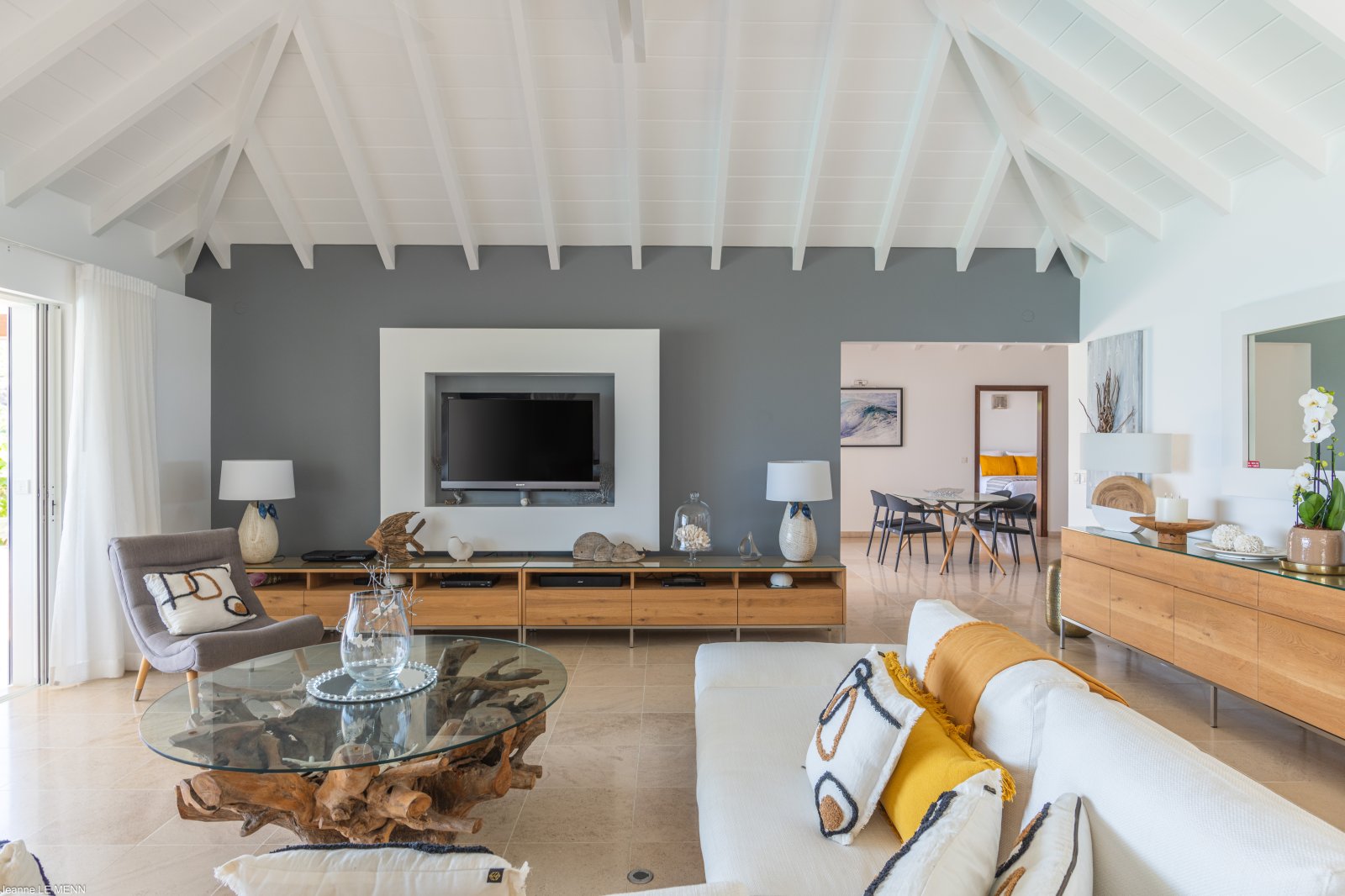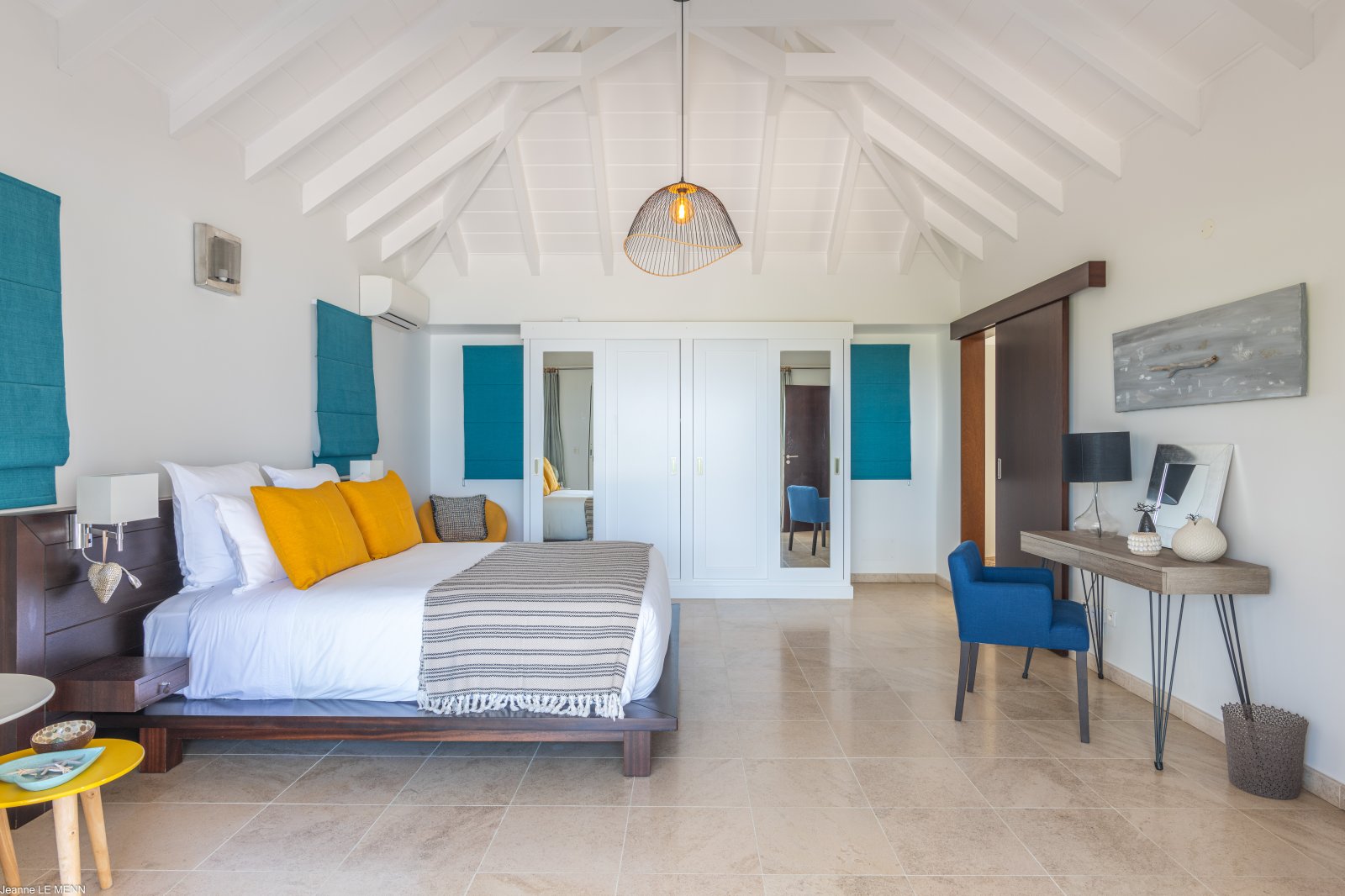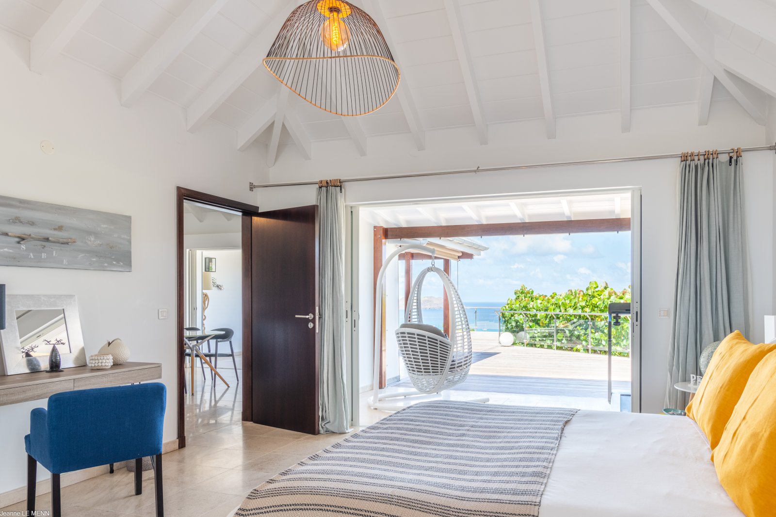 The bright, spacious living room looks out over the panoramic view, the gleaming infinity heated pool, and the terrace, which offers plenty of space for sunbathing, as well as shadier corners for an afternoon nap. The two bedrooms are of roughly equal size and amenities and are situated to either side of the living area for maximum privacy. Each opens to its own terrace area with seating and an ocean view. Tastefully decorated throughout, and with all modern amenities, Villa Isia (LIS) is a short drive from St Jean beach and the nearby shops and restaurants.
