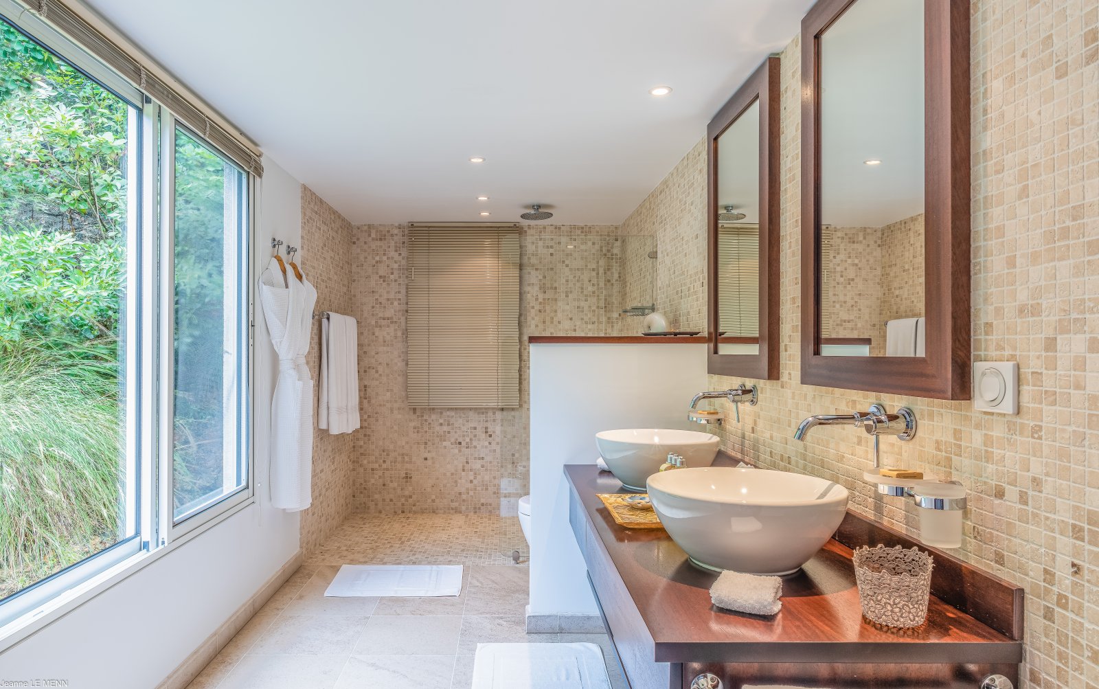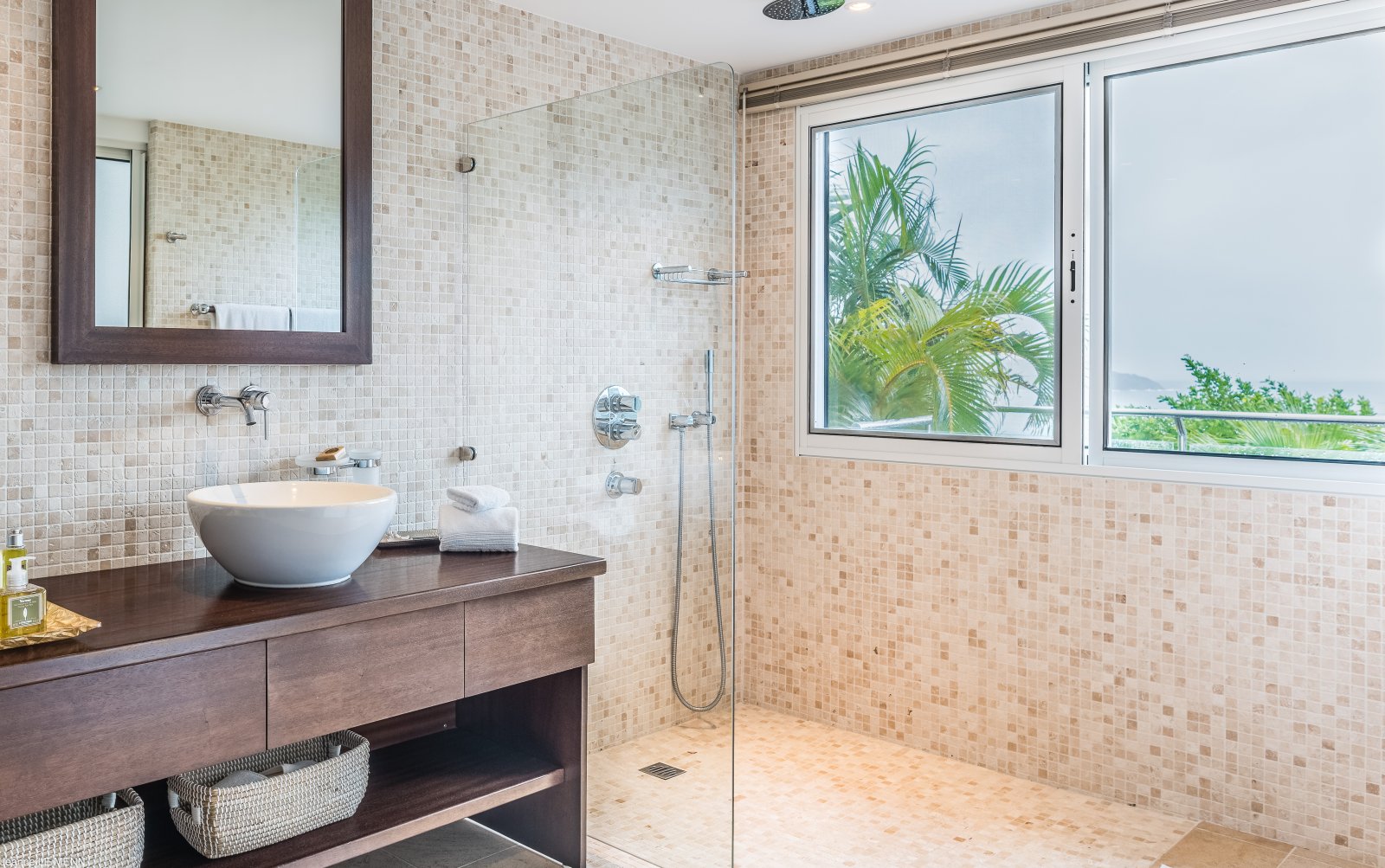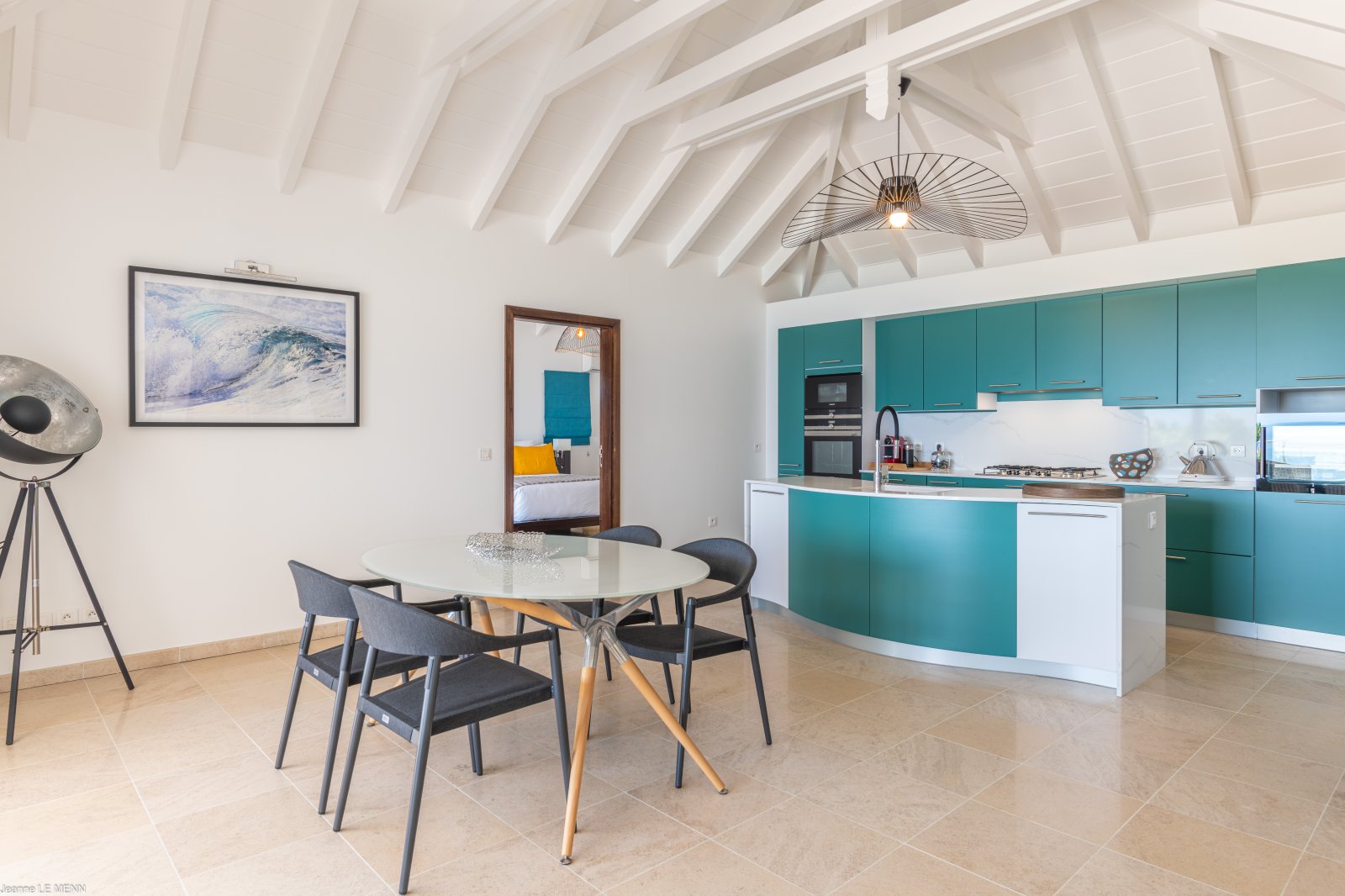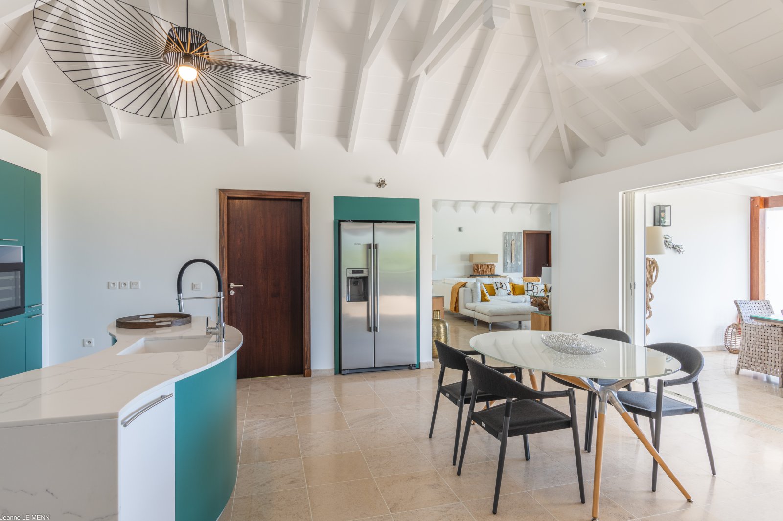 The bright, spacious living room looks out over the panoramic view, the gleaming infinity heated pool, and the terrace, which offers plenty of space for sunbathing, as well as shadier corners for an afternoon nap. The two bedrooms are of roughly equal size and amenities and are situated to either side of the living area for maximum privacy. Each opens to its own terrace area with seating and an ocean view. Tastefully decorated throughout, and with all modern amenities, Villa Isia (LIS) is a short drive from St Jean beach and the nearby shops and restaurants.