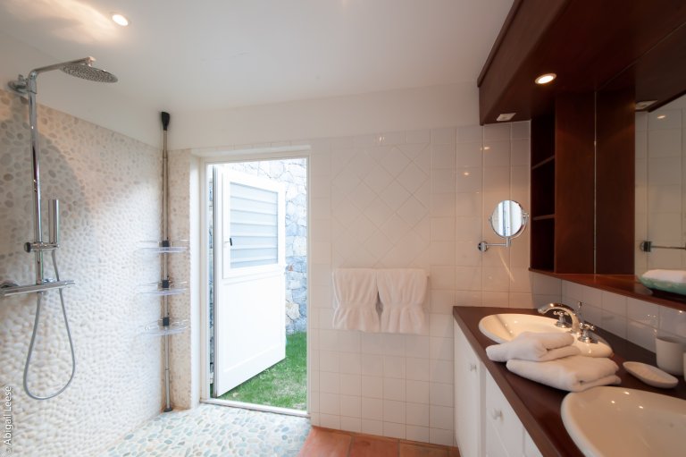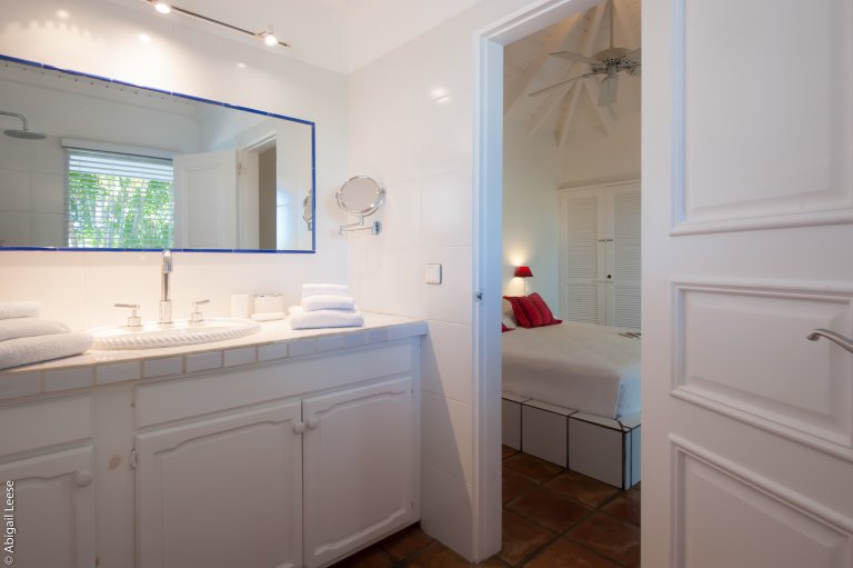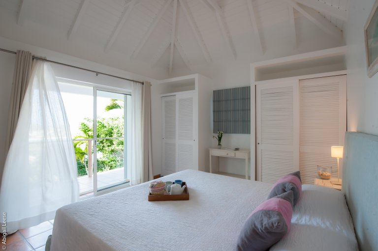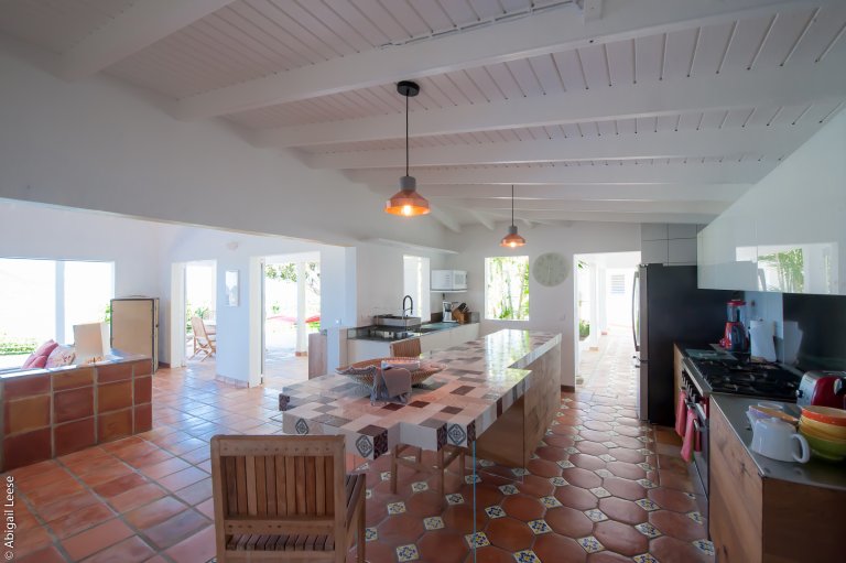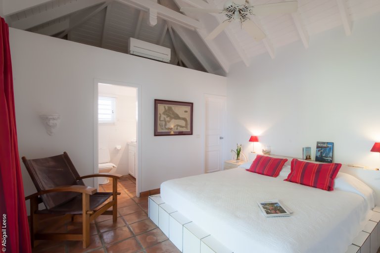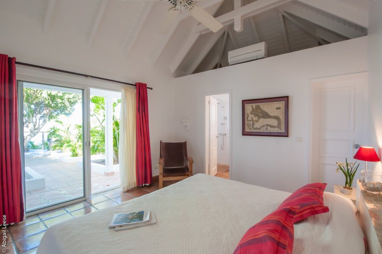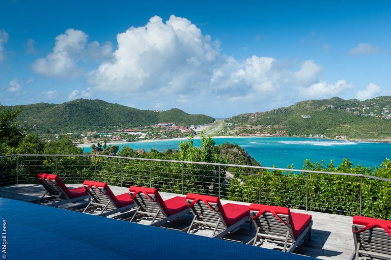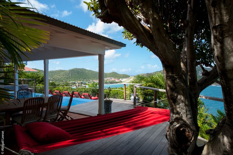 With a wonderful panoramic view over St. Jean Bay, Villa Ker Anna (AKA) is a color-filled dream both inside and out. The blue Atlantic Ocean stretches off toward St. Maarten on the horizon, the green leaves of palm and gaiac sway in the breeze, and the interior of this delightful home is decorated in bright Caribbean hues. The main living area opens onto the covered terrace and sun-drenched pool and deck. Villa Ker Ana's three bedrooms all have private ensuite baths and all enjoy the magnificent view.