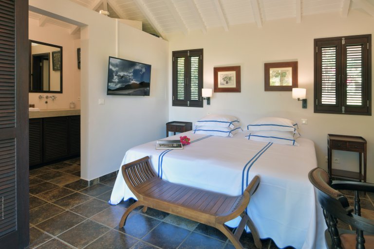 Each of the four bedrooms has a king-size bed (some of which can be made up as two twin beds instead), an ensuite bathroom, a large TV with French and US Dish Network, and a terrace. The wooden fence that encircles the property gives these terraces privacy from the outside world.