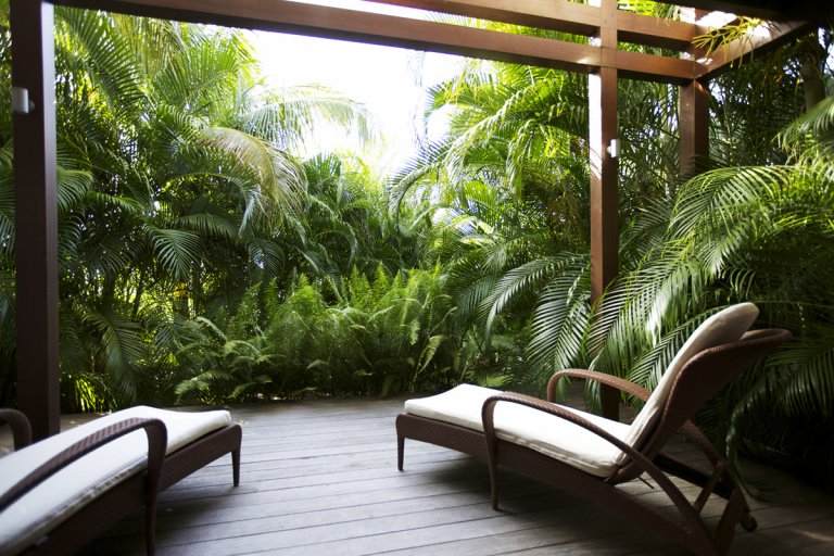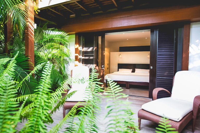 Bed: 2 Twin Beds w/Option as King Bed • En-Suite Bath with Rainfall Shower • Air Conditioning • High Definition, Satellite TV • Ceiling Fan • Safe • Private Entry • Direct Access to Private Terrace