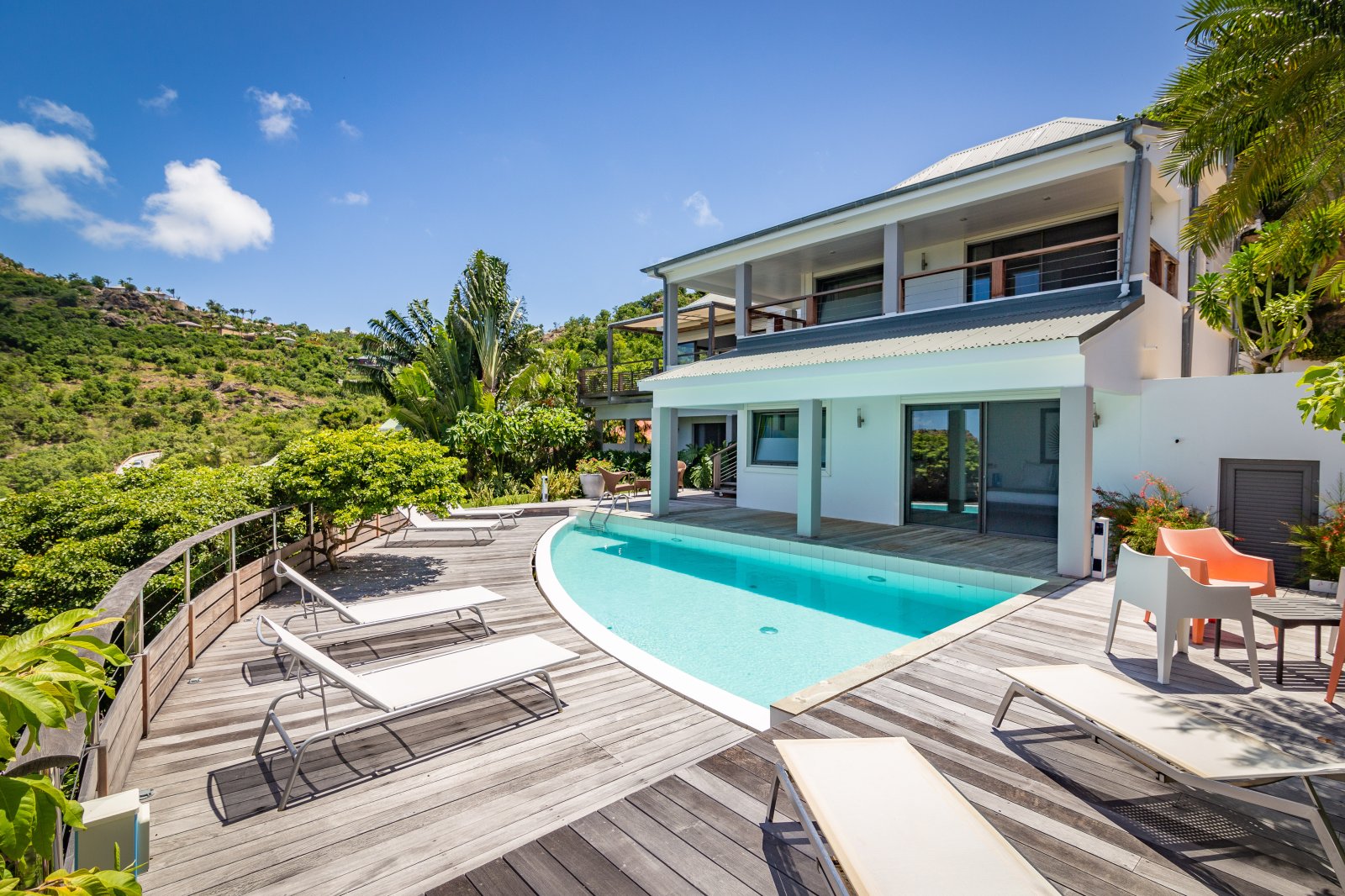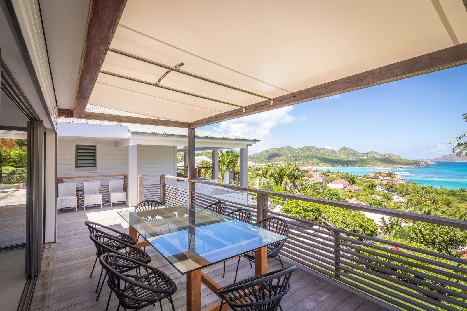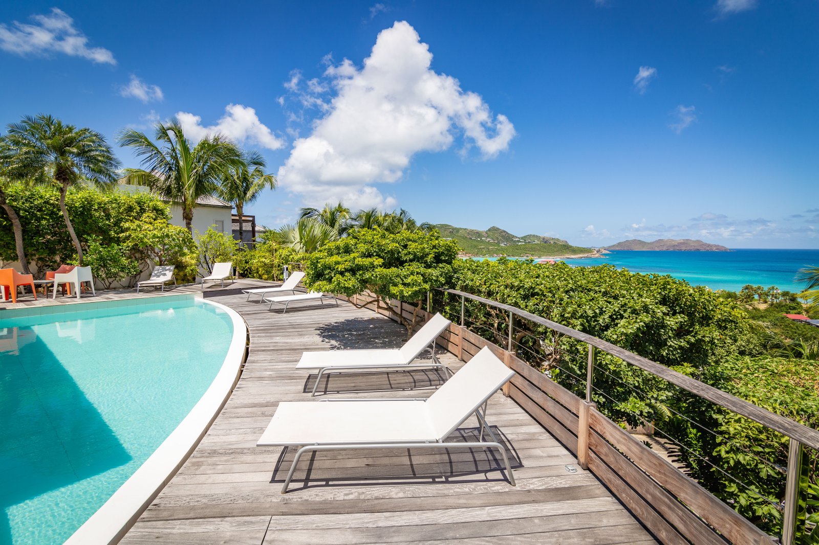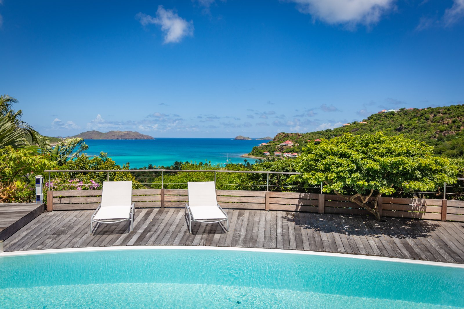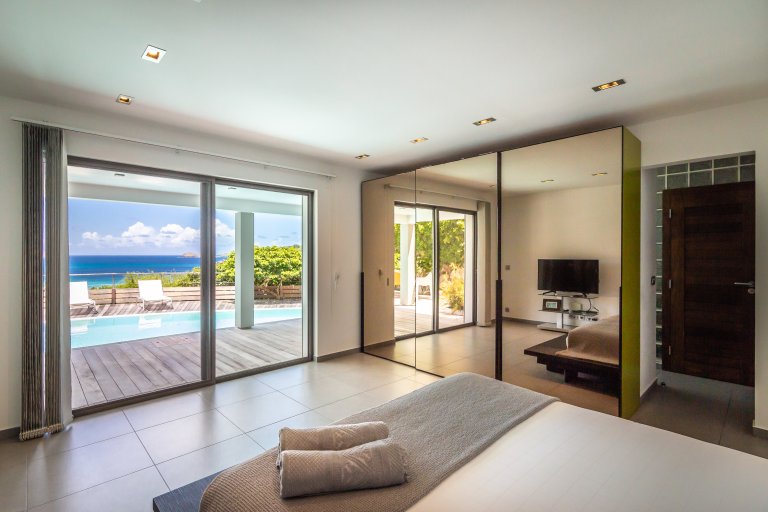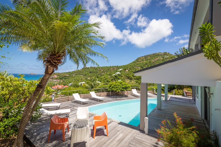 If you choose to venture out, Nikki Beach, St. Jean Beach and the shopping area are nearby. Or stay in and soak up that sunshine and those views. The main terrace has ample areas for sitting, dining and barbecue, along with plenty of chaises downstairs by the pool.