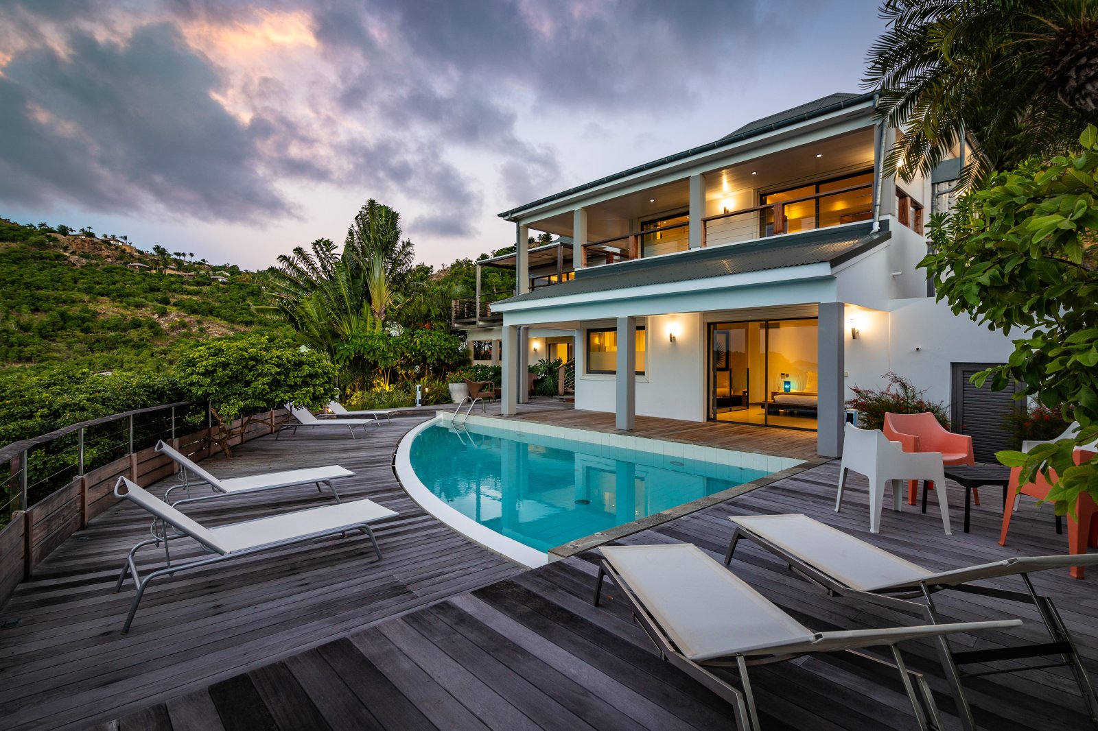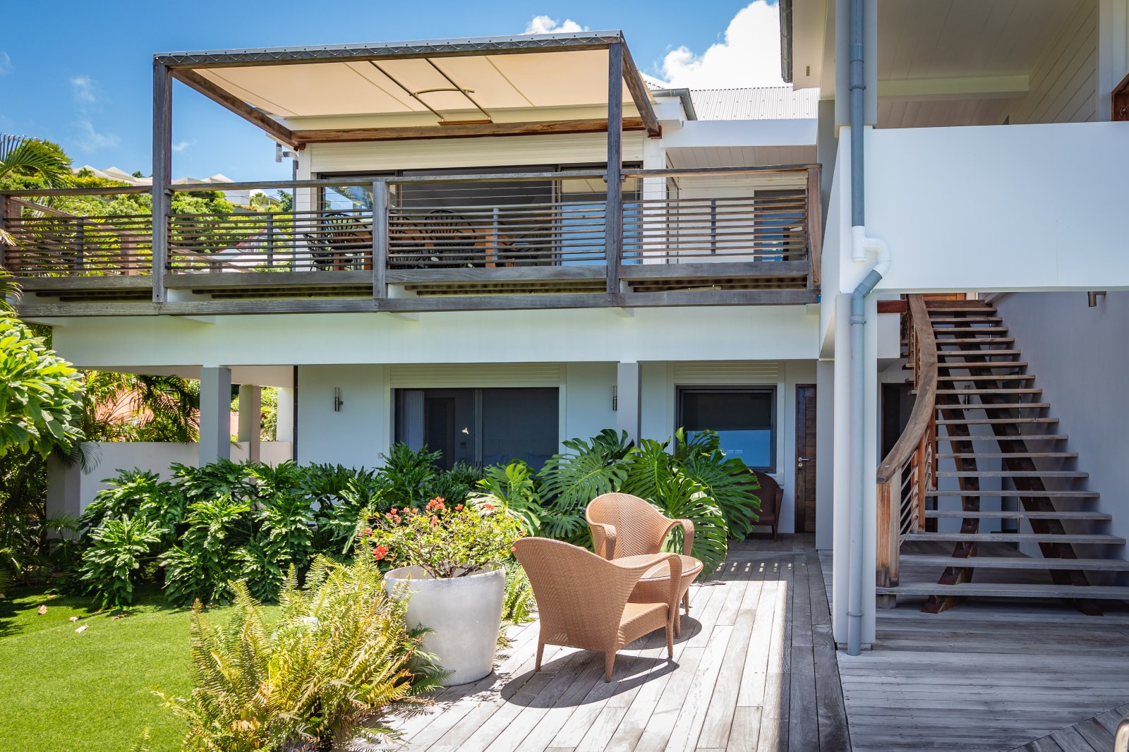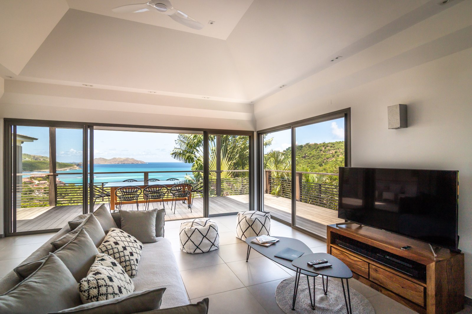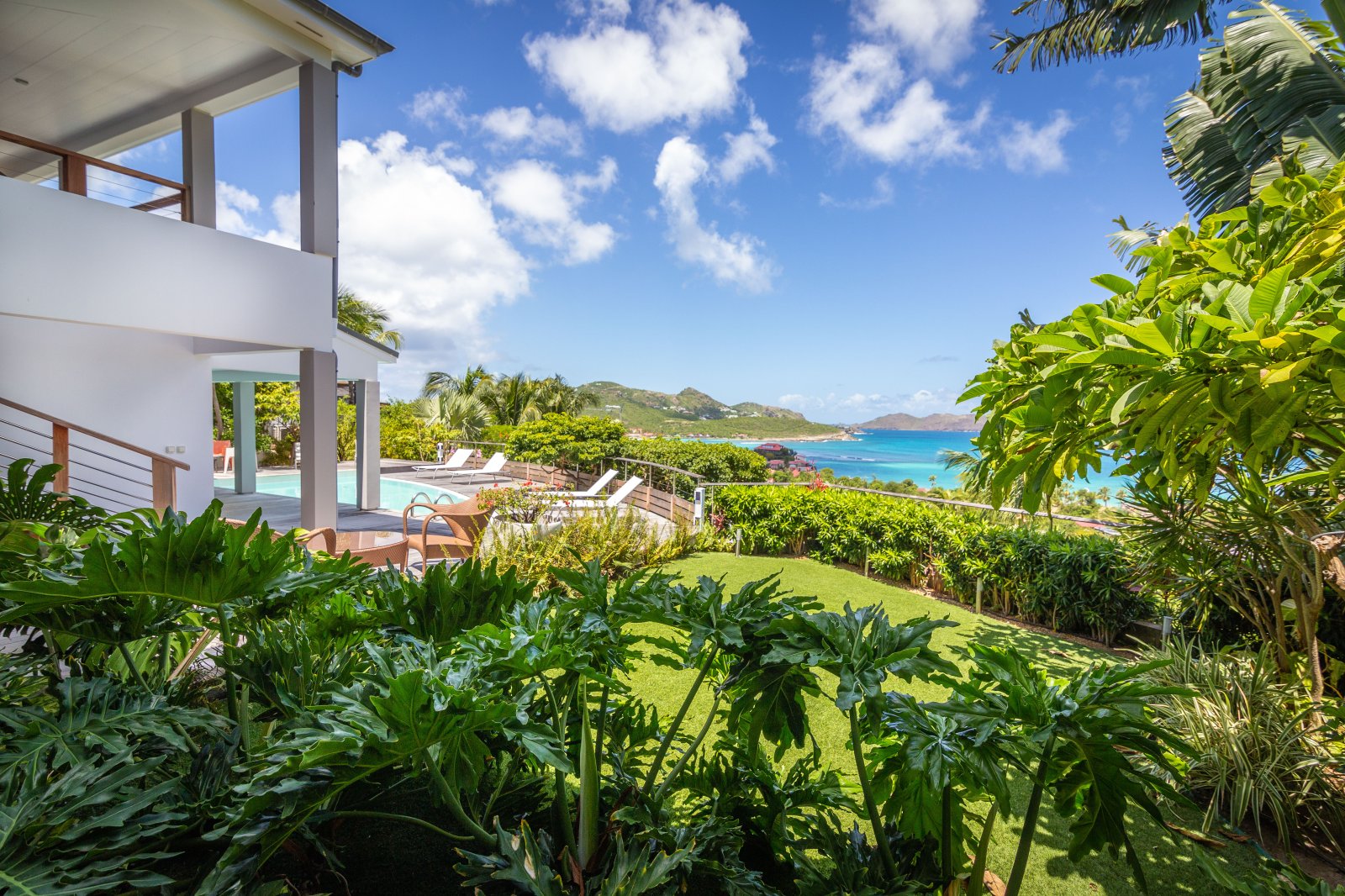 If you choose to venture out, Nikki Beach, St. Jean Beach and the shopping area are nearby. Or stay in and soak up that sunshine and those views. The main terrace has ample areas for sitting, dining and barbecue, along with plenty of chaises downstairs by the pool.