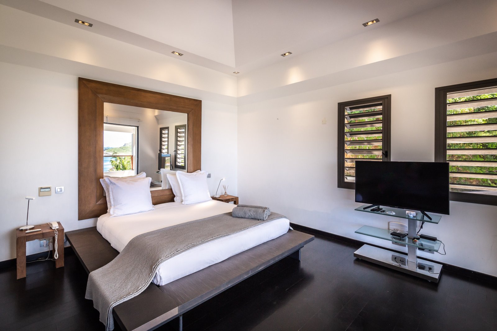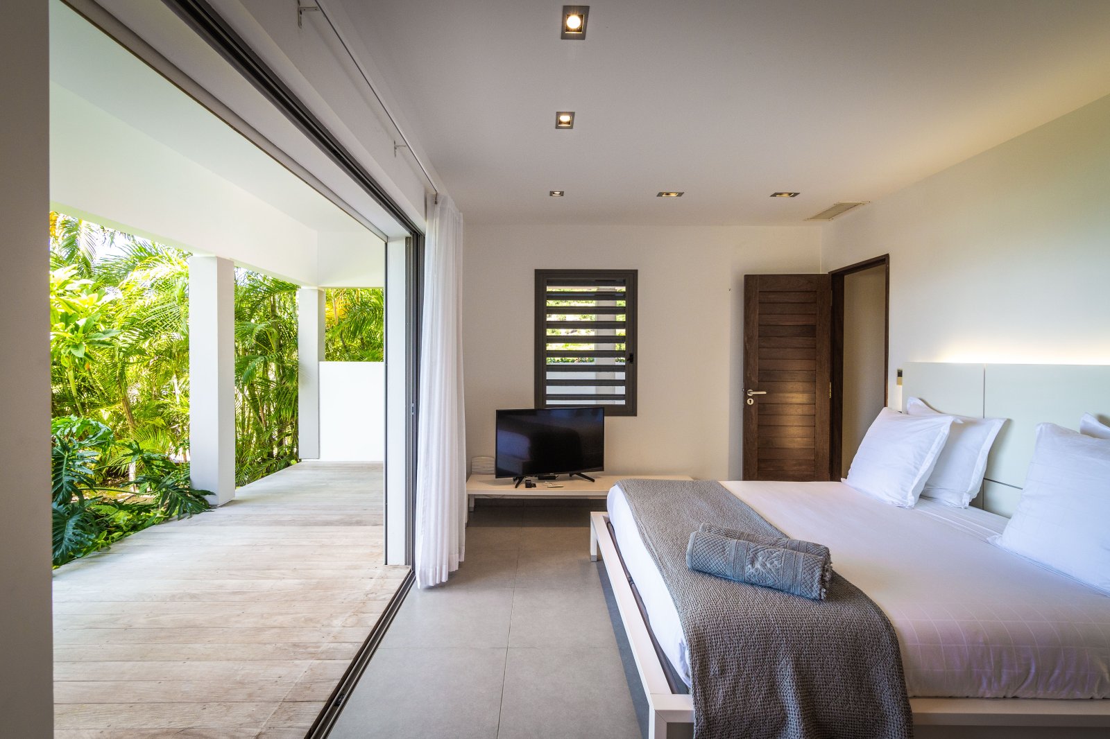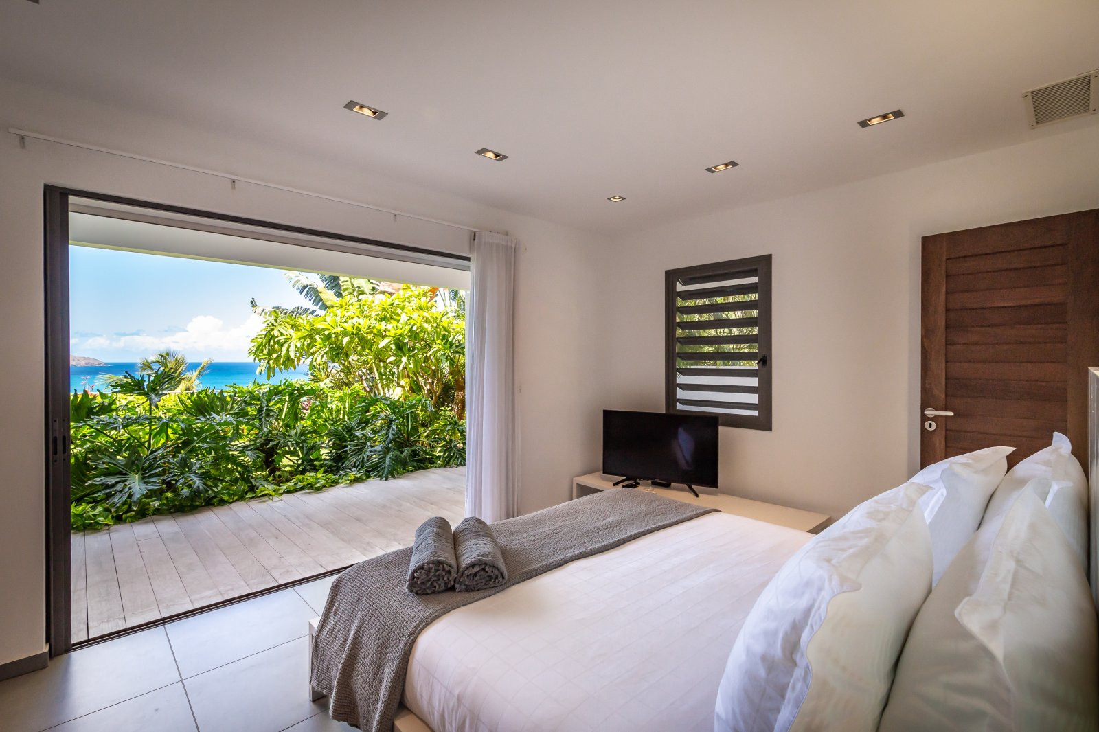 Bed: Queen Bed • En-Suite Bath with Rainfall Shower and Hair Dryer • High Definition TV • Air Conditioning • Sound System • Safe • Exterior Access • Direct Access to Terrace • Garden View • Ocean View