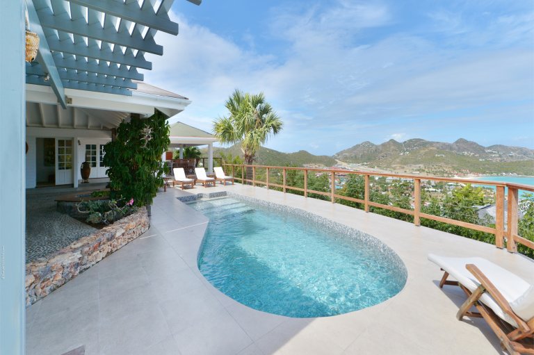 For everyone else, Villa Sunrise has many other charms. It has a convenient location, just a five-minute walk from Nikki Beach and St. Jean. It has beguiling views over St. Jean Bay. And it has the traditional Caribbean style that many visitors to the island love.