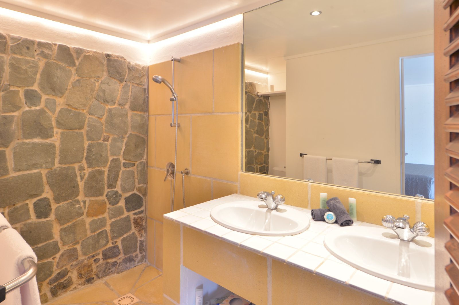 Bed: 2 Twin Beds w/Option as King Bed • En-Suite Bath with Rainfall Shower, Hair Dryer and Dual Vanity • Air Conditioning • Safe