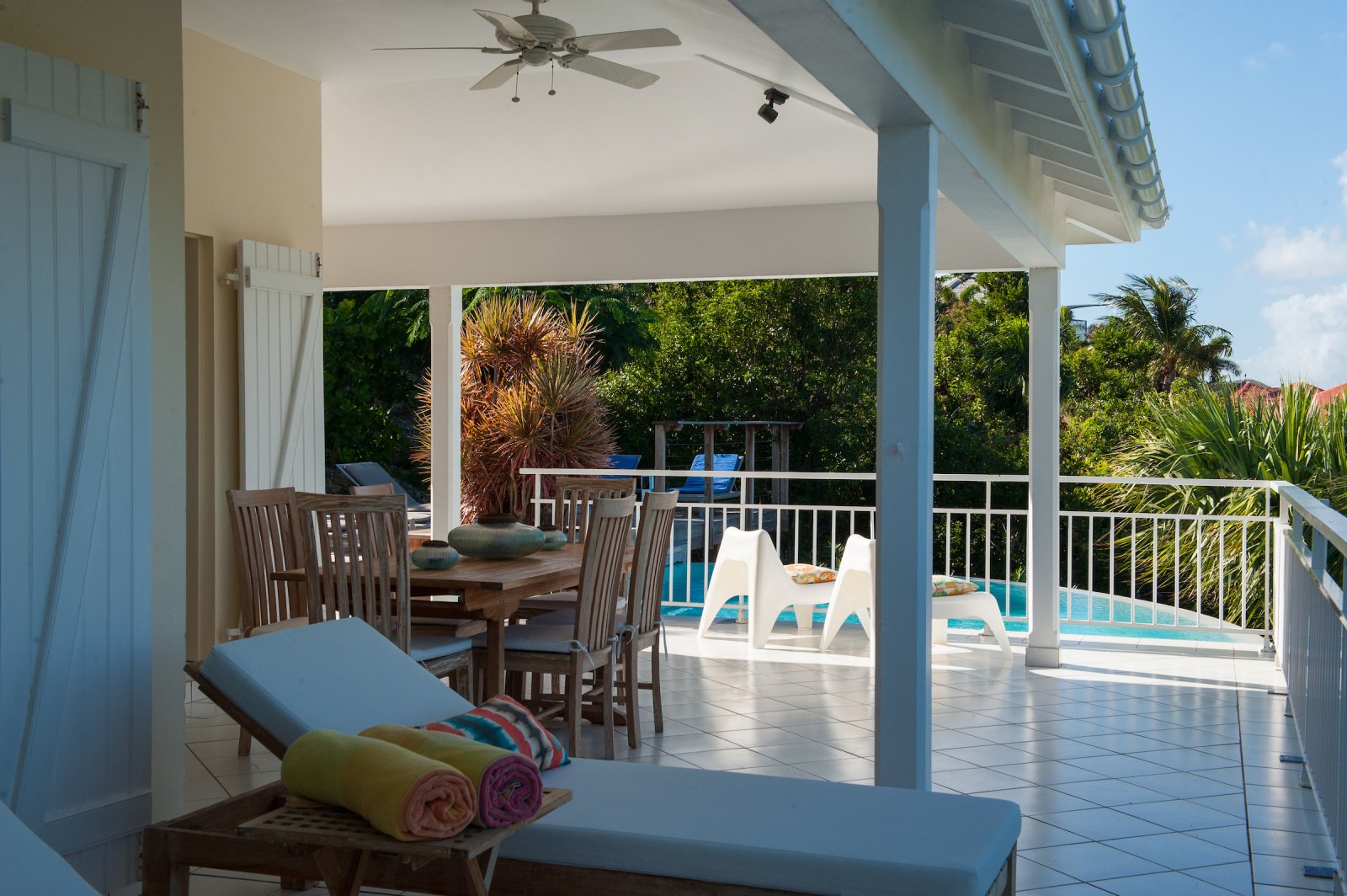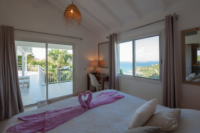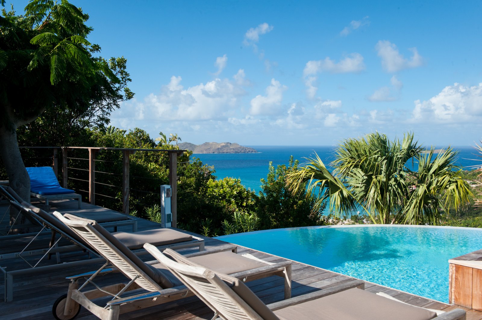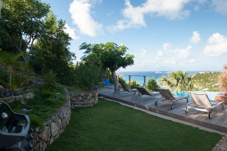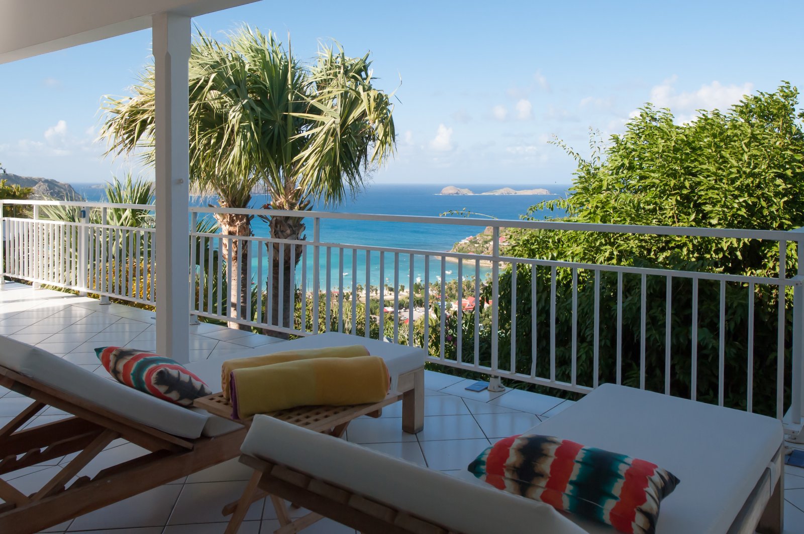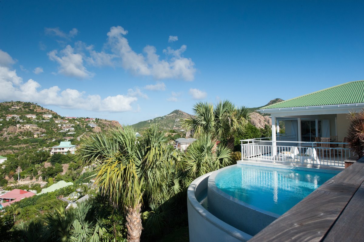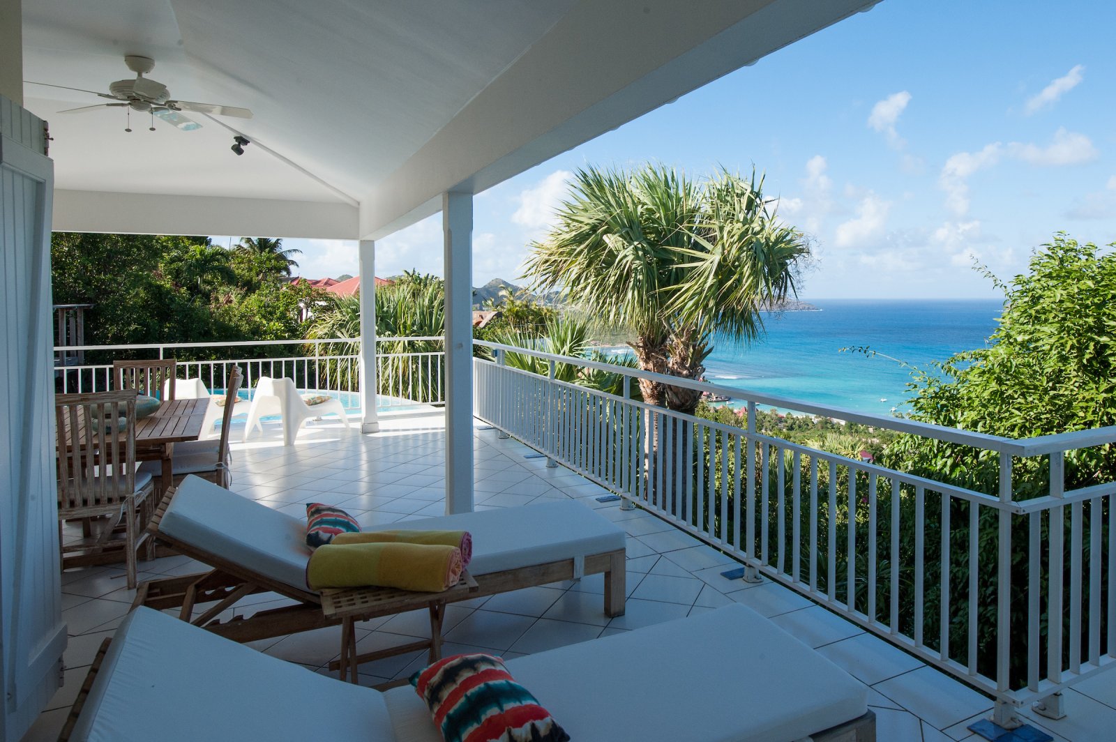 Villa Les Lataniers is located high above St. Jean, with a great view and a convenient location. The living area and bedrooms are decorated in a bright and airy style, with wood tones and with fabrics. This is a great house for families or two couples sharing a holiday.
