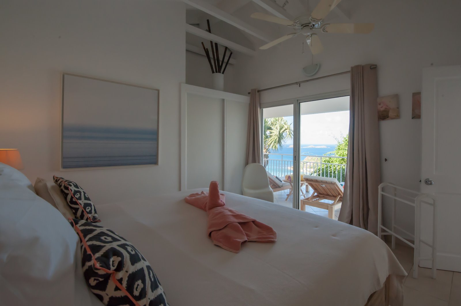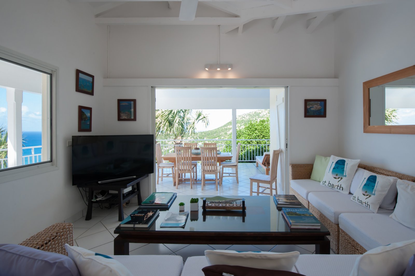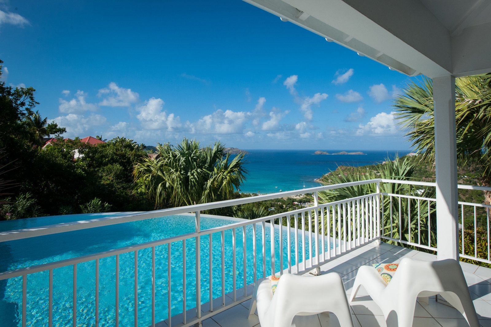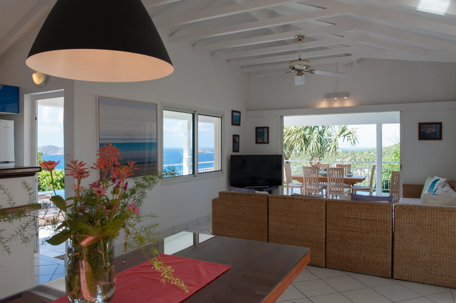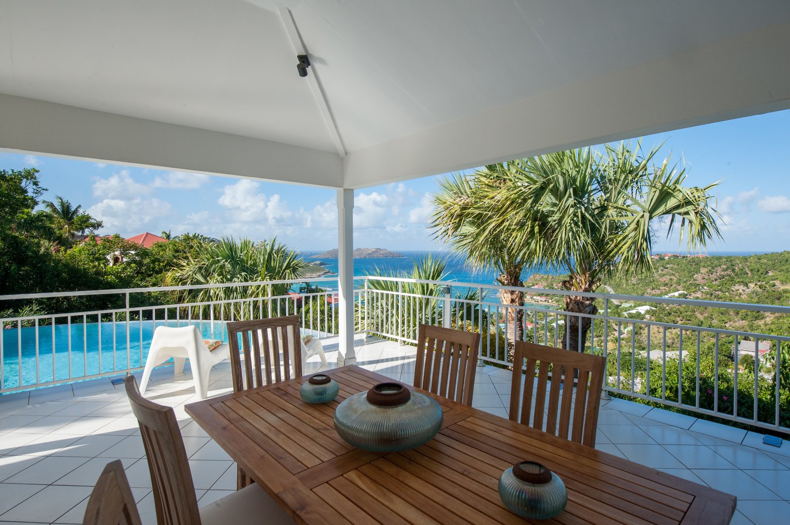 Villa Les Lataniers is located high above St. Jean, with a great view and a convenient location. The living area and bedrooms are decorated in a bright and airy style, with wood tones and with fabrics. This is a great house for families or two couples sharing a holiday.