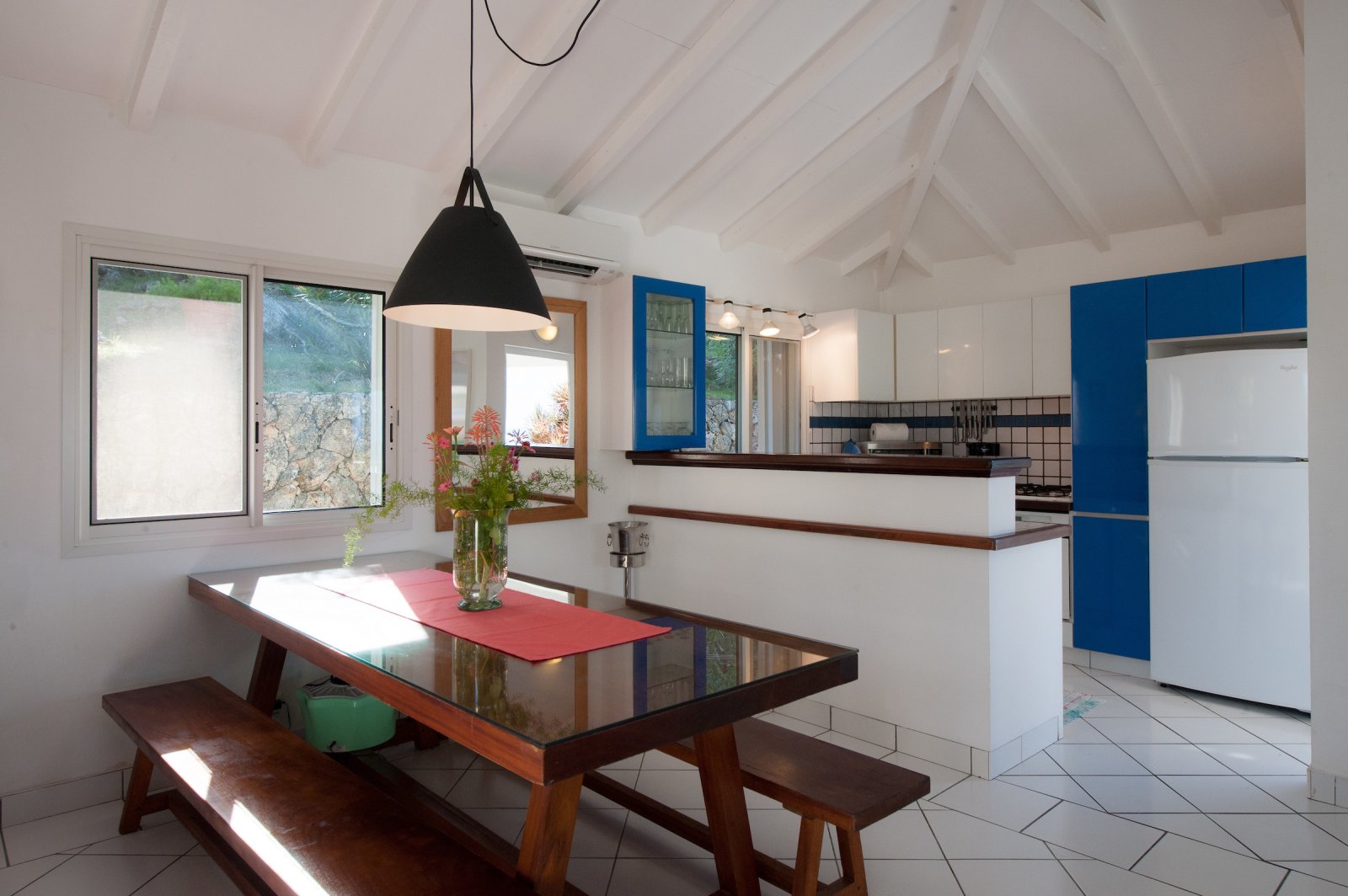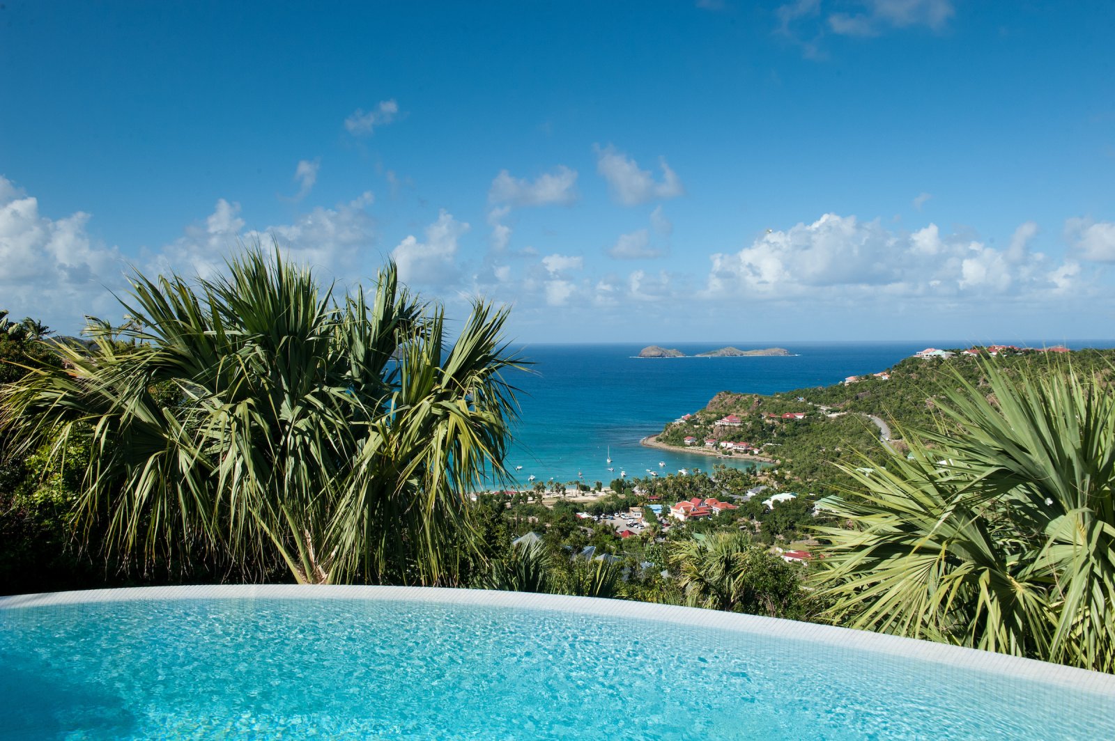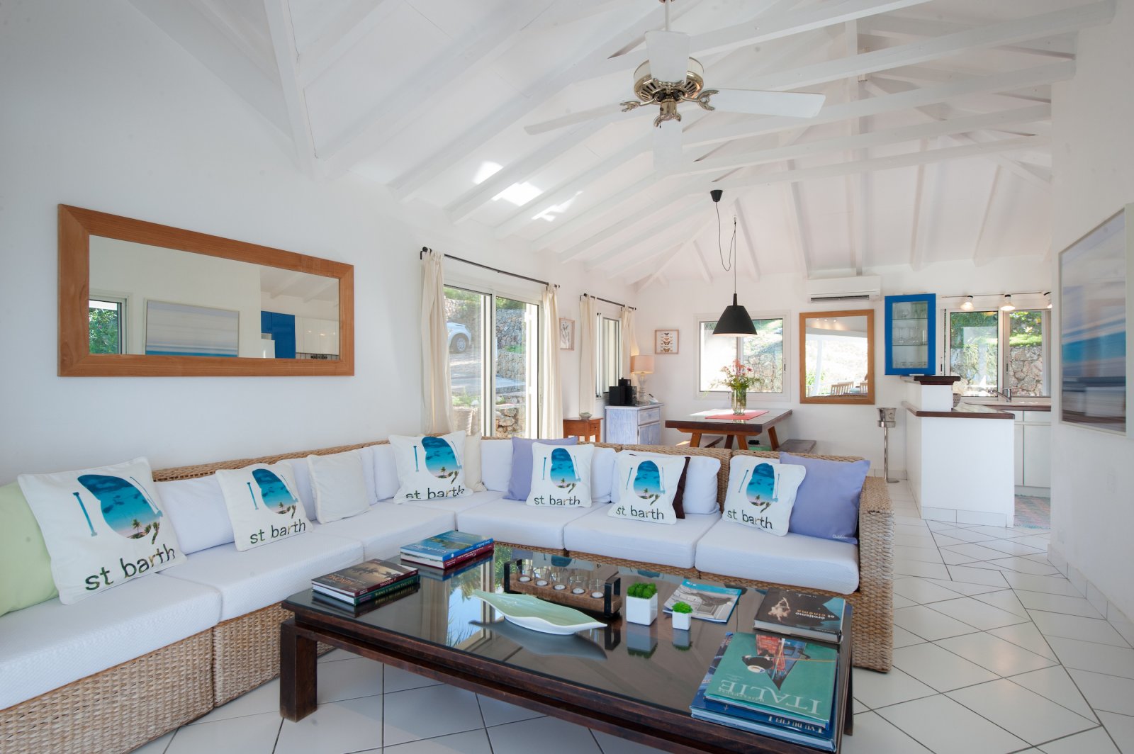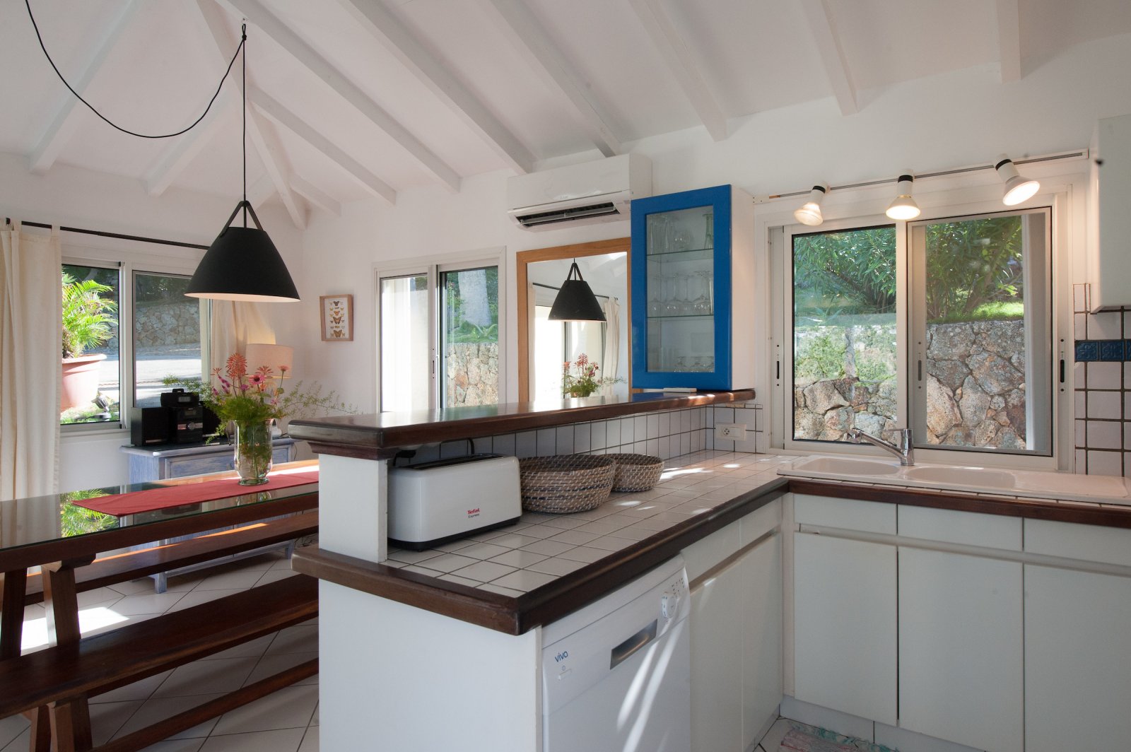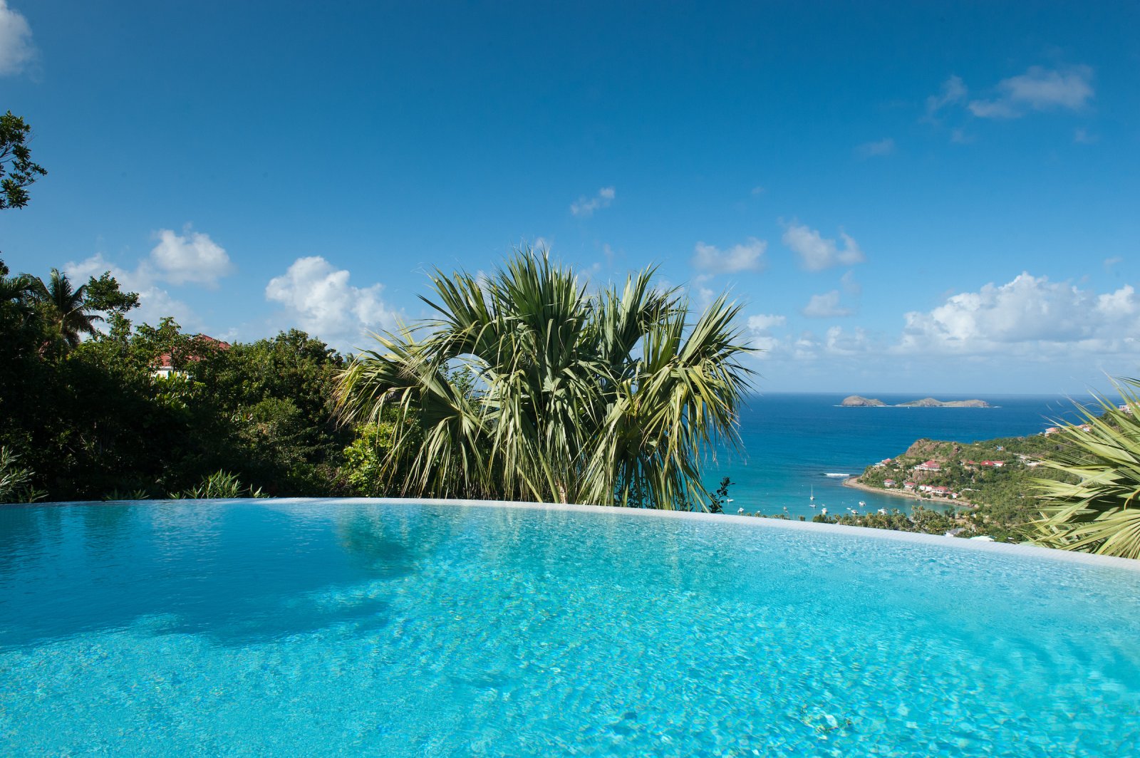 Villa Les Lataniers is located high above St. Jean, with a great view and a convenient location. The living area and bedrooms are decorated in a bright and airy style, with wood tones and with fabrics. This is a great house for families or two couples sharing a holiday.