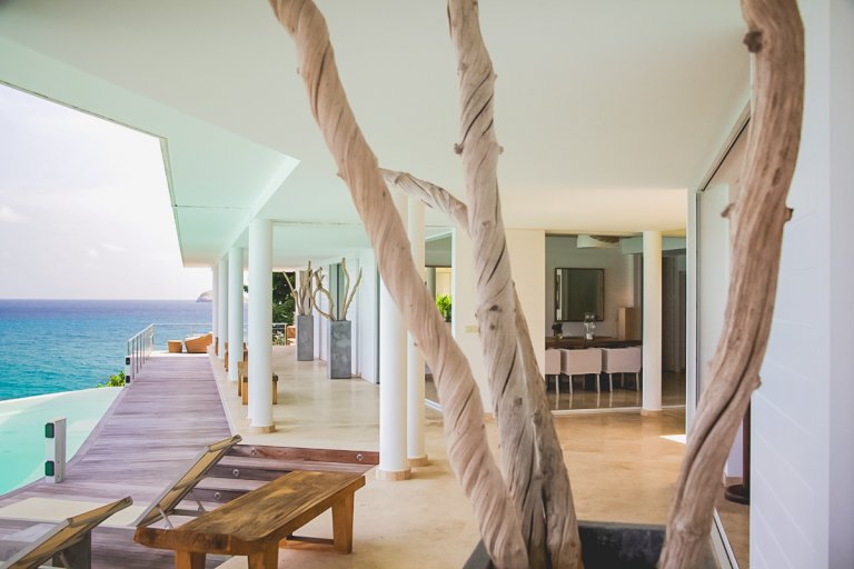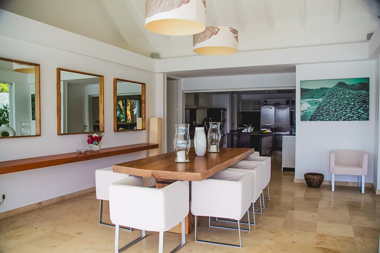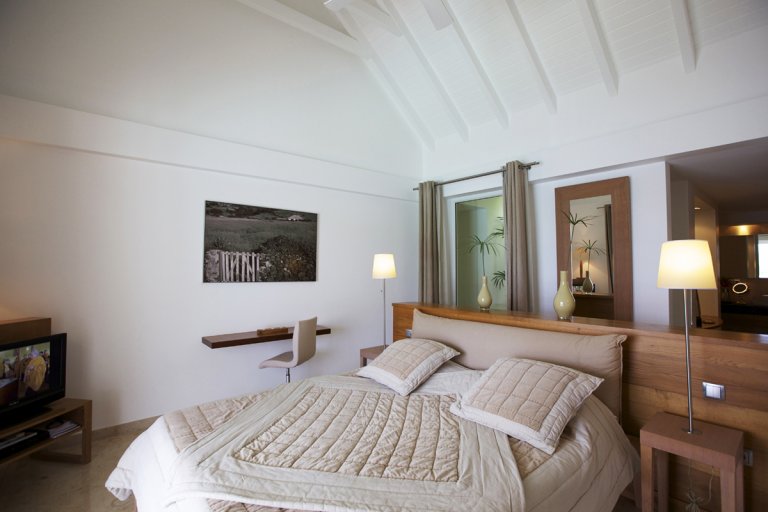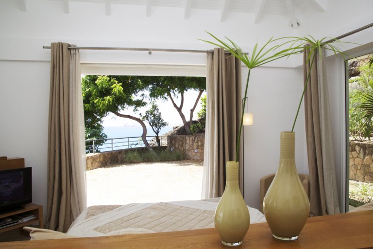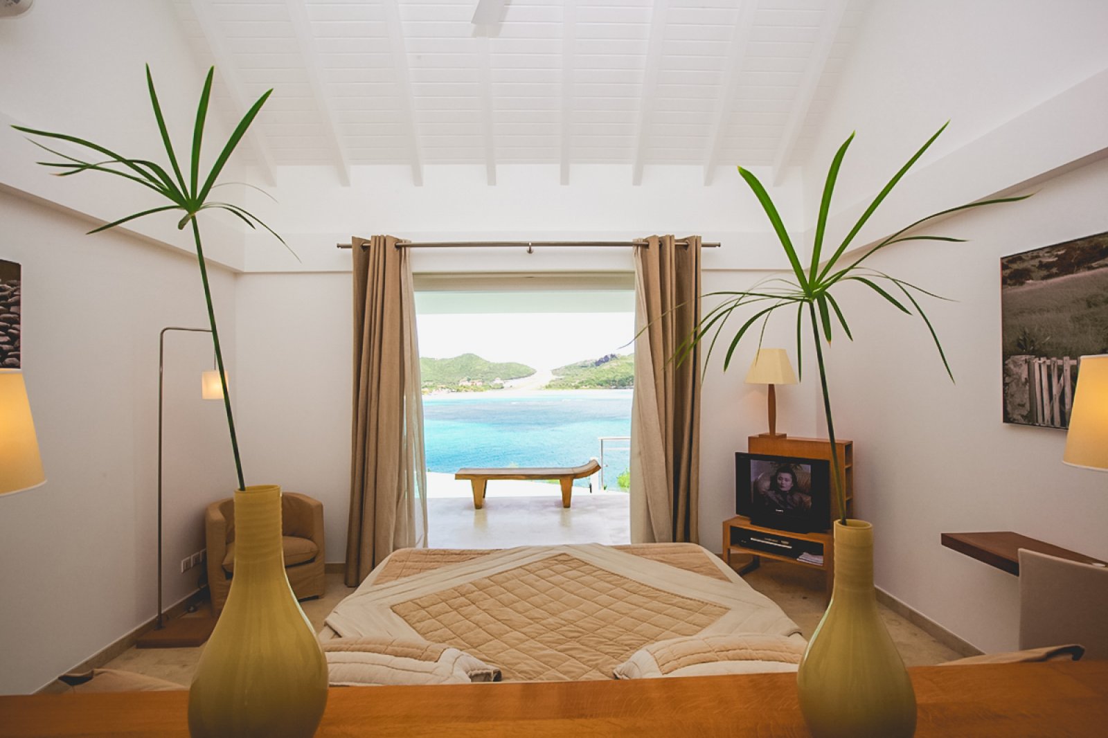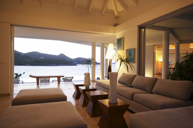 When you first set foot inside, the large living quarters will welcome you, along with the superlative St. Barts views. Every design element and piece of furniture here is meant to channel the relaxed, elegant vibe of St. Barts. Its large sofas have off-white upholstery, which are perfect for lounging around and taking in the view just outside. You can curl up and read a book, or you can gaze out onto the stunning ocean and island vistas.