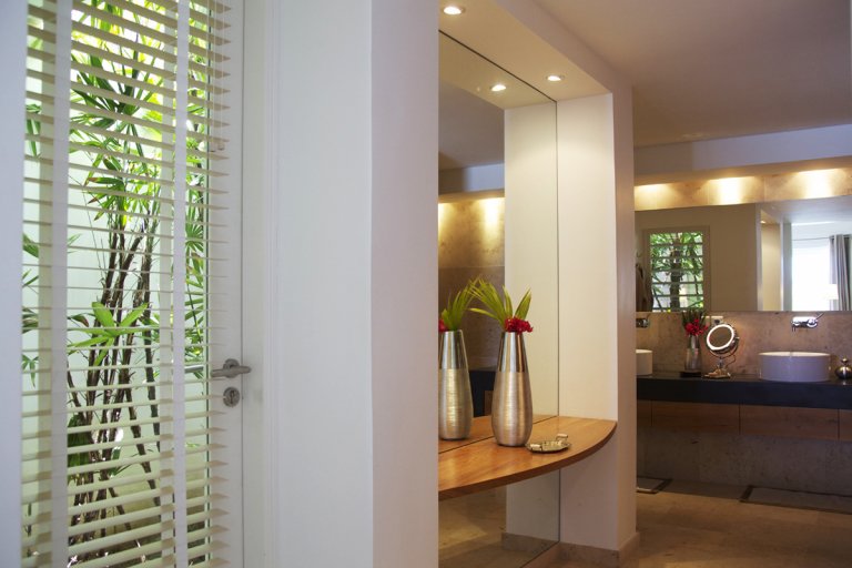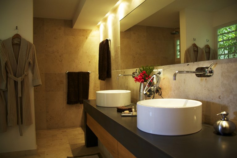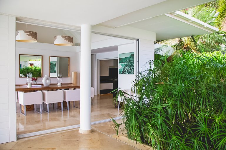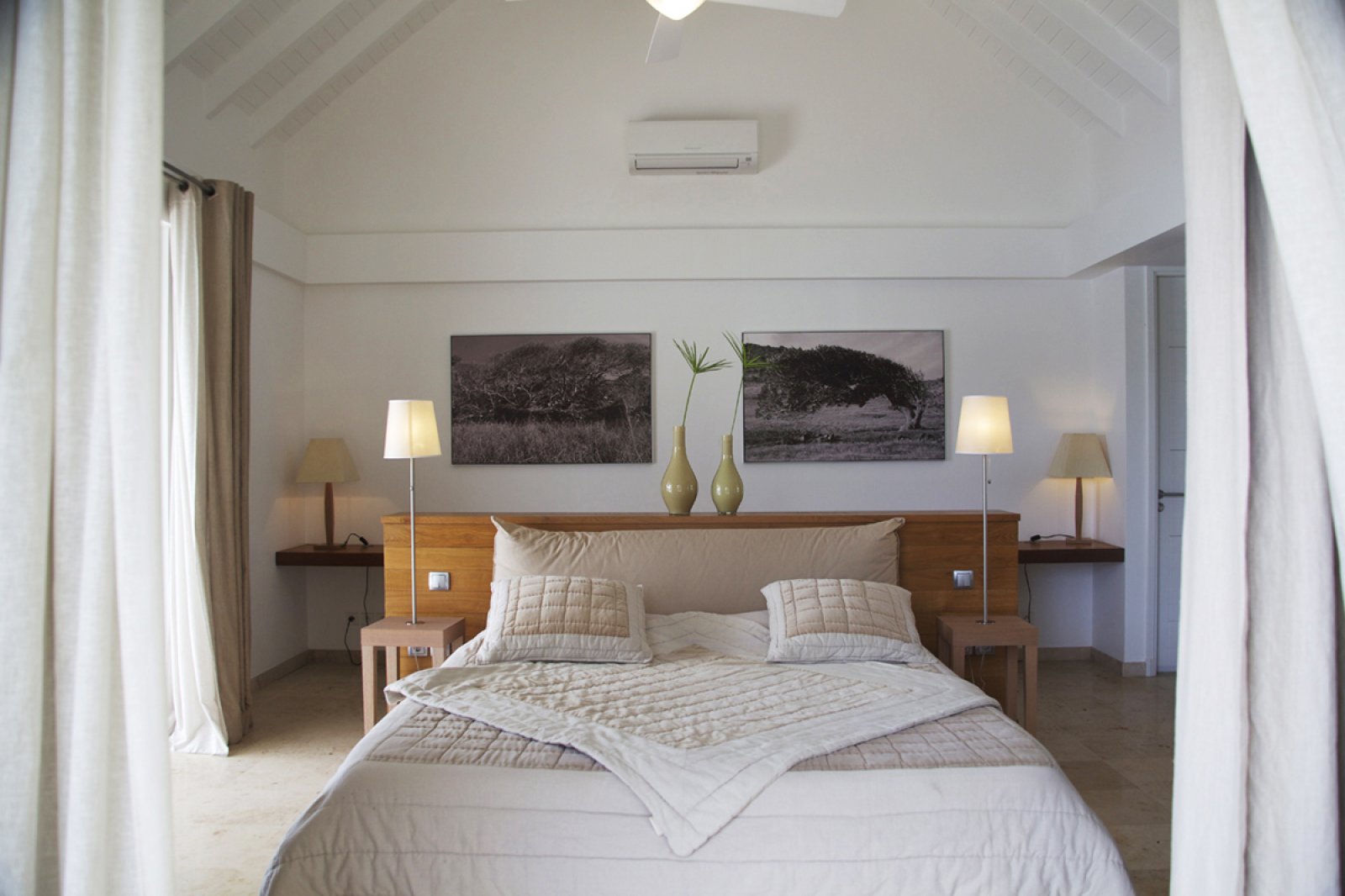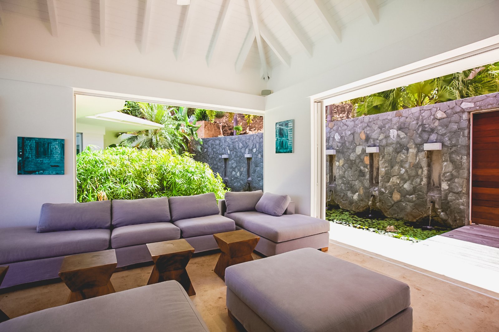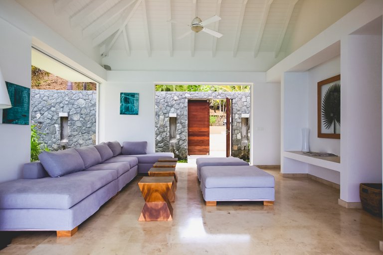 When you first set foot inside, the large living quarters will welcome you, along with the superlative St. Barts views. Every design element and piece of furniture here is meant to channel the relaxed, elegant vibe of St. Barts. Its large sofas have off-white upholstery, which are perfect for lounging around and taking in the view just outside. You can curl up and read a book, or you can gaze out onto the stunning ocean and island vistas.