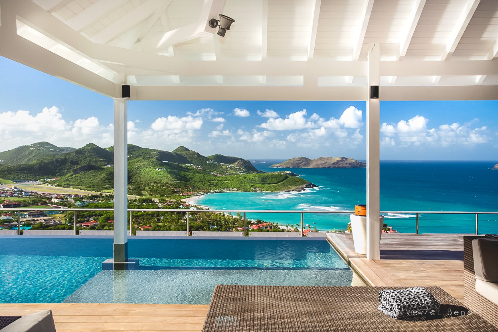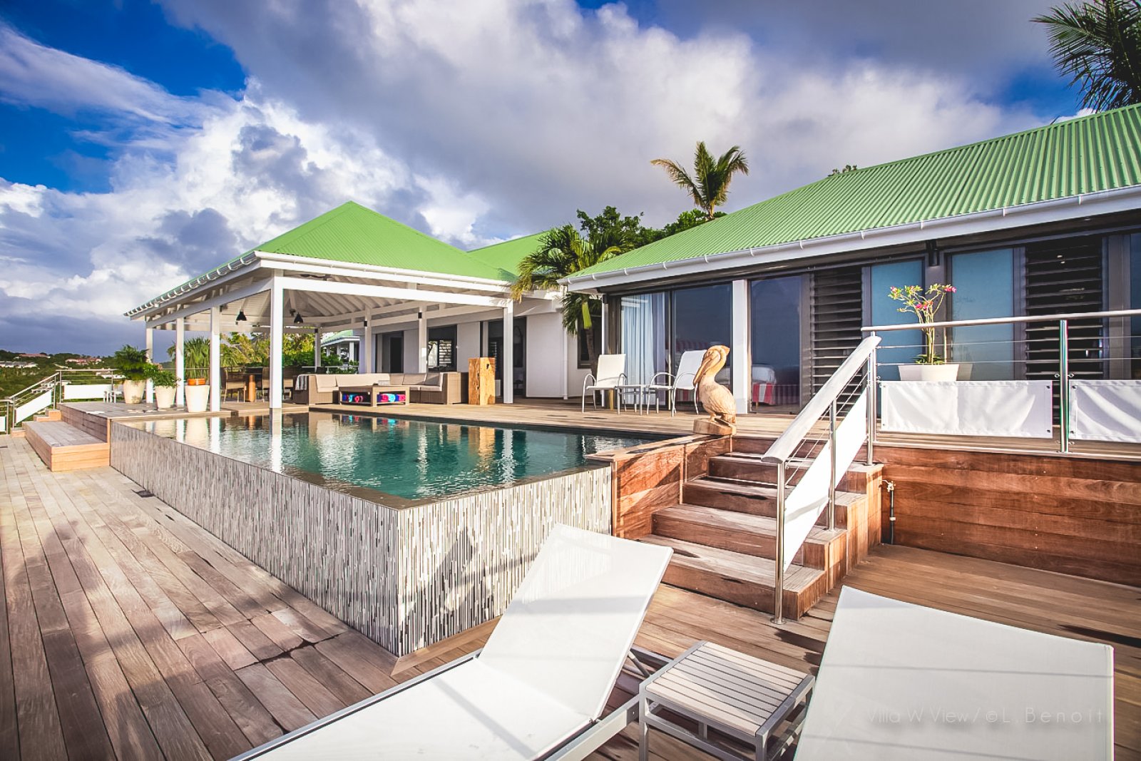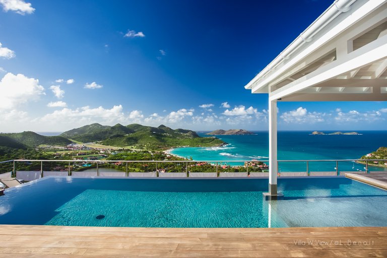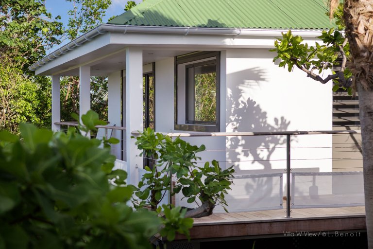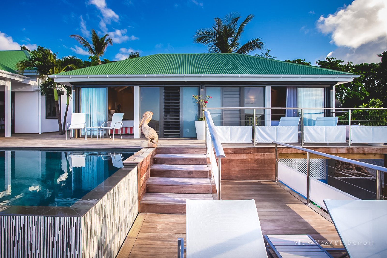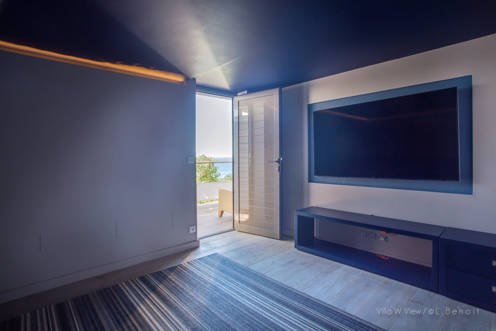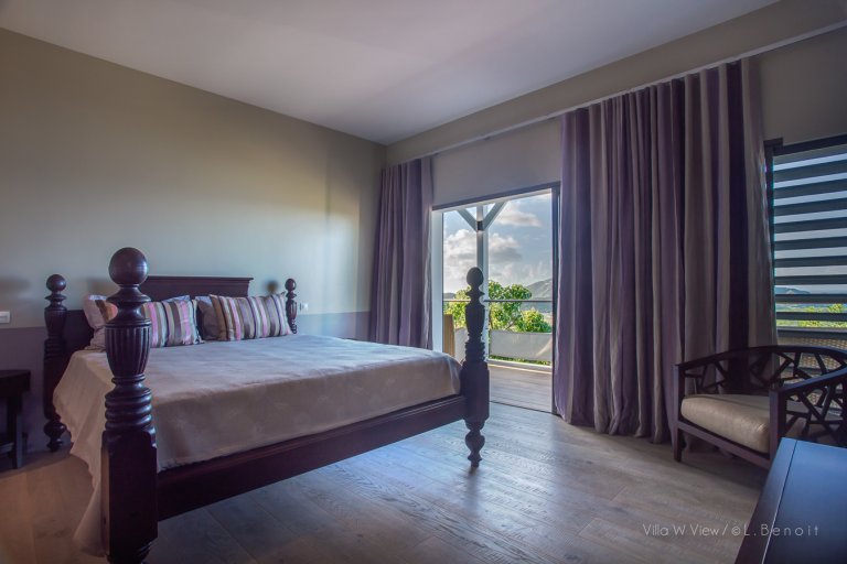 Among the many luxuries to be discovered at Villa W View (WVU) is the abundance of light and space. The rooms of this vacation rental home are gracefully, generously proportioned, with large amounts of floor space, an open-plan design, high ceilings and wide walls of windows. The feeling they create is one of being at peace with nature, part of a glorious ecosystem of sea and sky, sunsets and stars. The ample living quarters are laid out in an intelligent fashion that allows for plenty of quality togetherness—without ever stepping on one another’s toes—and for some serious privacy. And at every turn, there are stellar views of the crashing waves of the Caribbean as the lap the shore of St. Jean Bay, far, far below, and seemingly a world away.