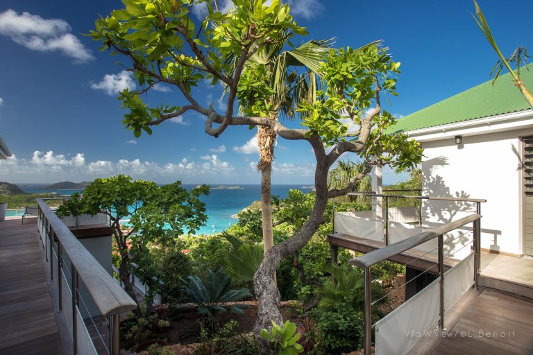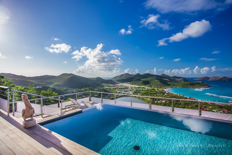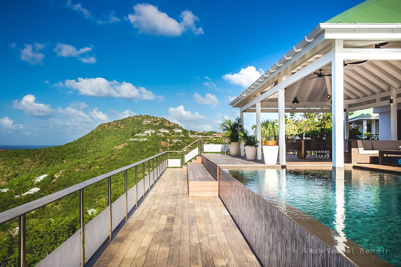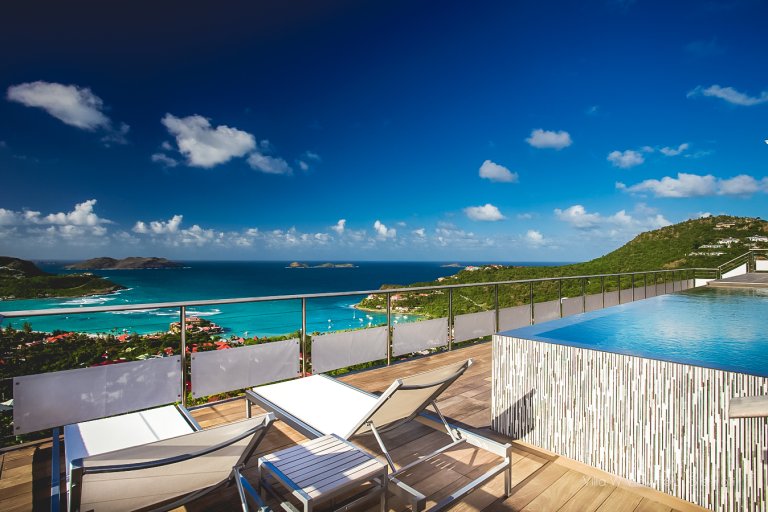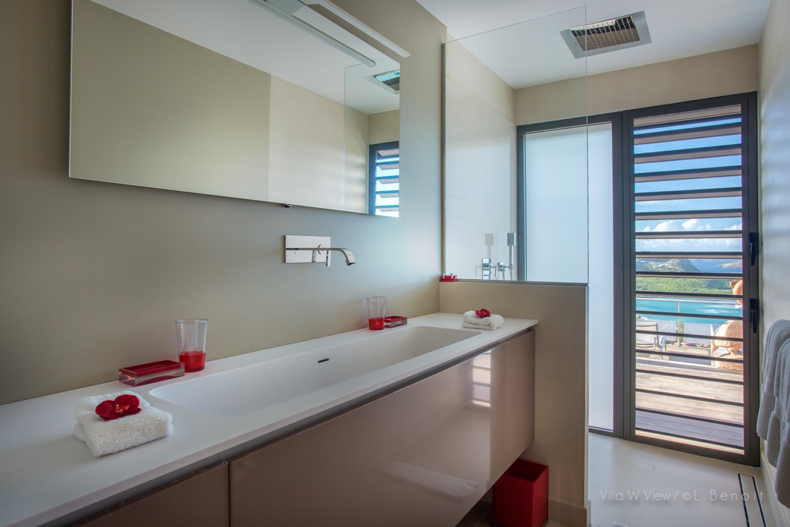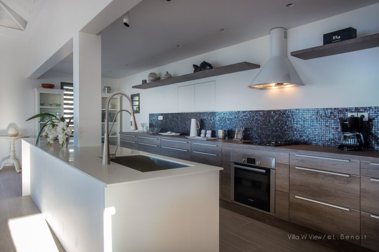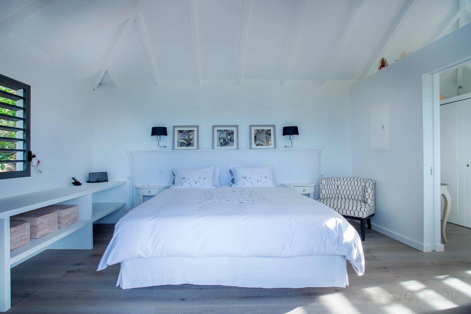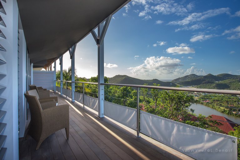 Among the many luxuries to be discovered at Villa W View (WVU) is the abundance of light and space. The rooms of this vacation rental home are gracefully, generously proportioned, with large amounts of floor space, an open-plan design, high ceilings and wide walls of windows. The feeling they create is one of being at peace with nature, part of a glorious ecosystem of sea and sky, sunsets and stars. The ample living quarters are laid out in an intelligent fashion that allows for plenty of quality togetherness—without ever stepping on one another’s toes—and for some serious privacy. And at every turn, there are stellar views of the crashing waves of the Caribbean as the lap the shore of St. Jean Bay, far, far below, and seemingly a world away.