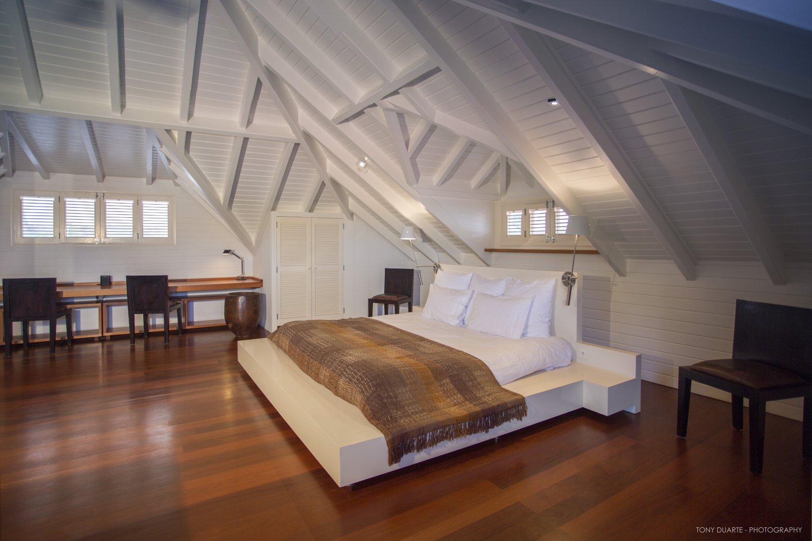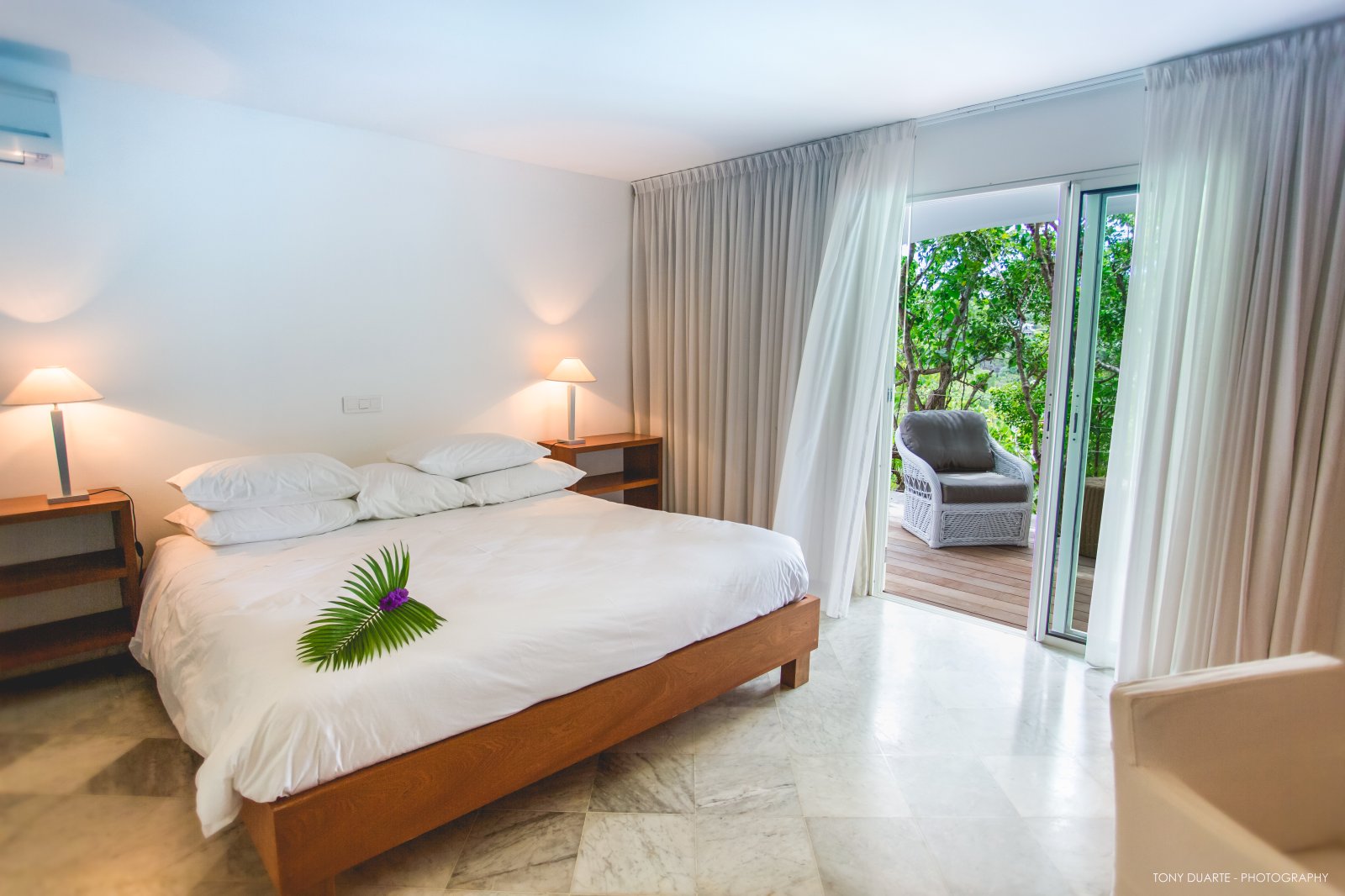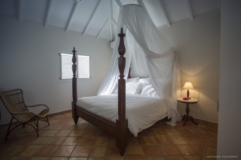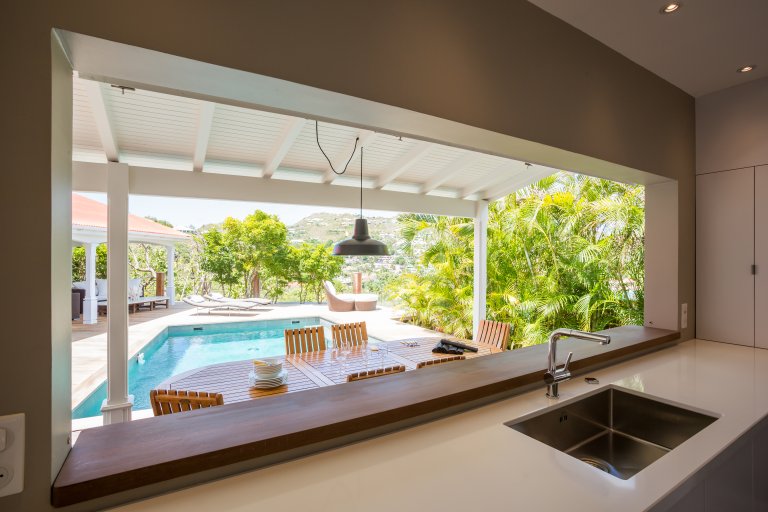 Located in the heart of St. Jean, in an area that is central and convenient yet feels very private and secluded, Villa Xanadu is a paradise for true Caribbean living. Its designers and owners have managed to preserve the house’s original St. Barth spirit—the one that has led many frequent visitors to fall in love with the island, defined by open doors, lavish gardens and stunning ocean views at nearly every turn—even as they recently upgraded the villa to bring modern-day comforts. The four-poster beds are still draped with romantic, atmospheric mosquito netting, but now, for instance, the kitchen is up-to-date, and the air-conditioning is fully functional.