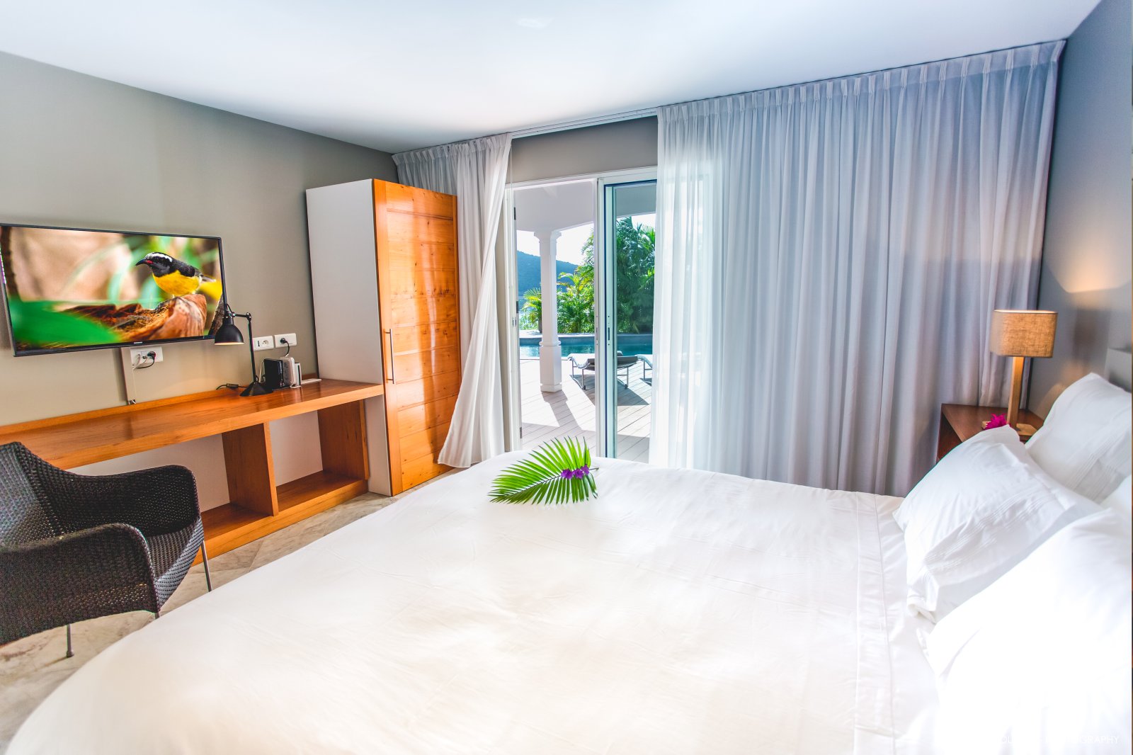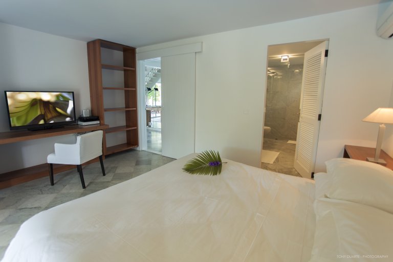 Bed: Queen Bed • En-Suite Bath with Walk-In Shower and Dual Vanity • Air Conditioning • Flat-Screen TV • iPod Docking Station • Direct Access to Terrace