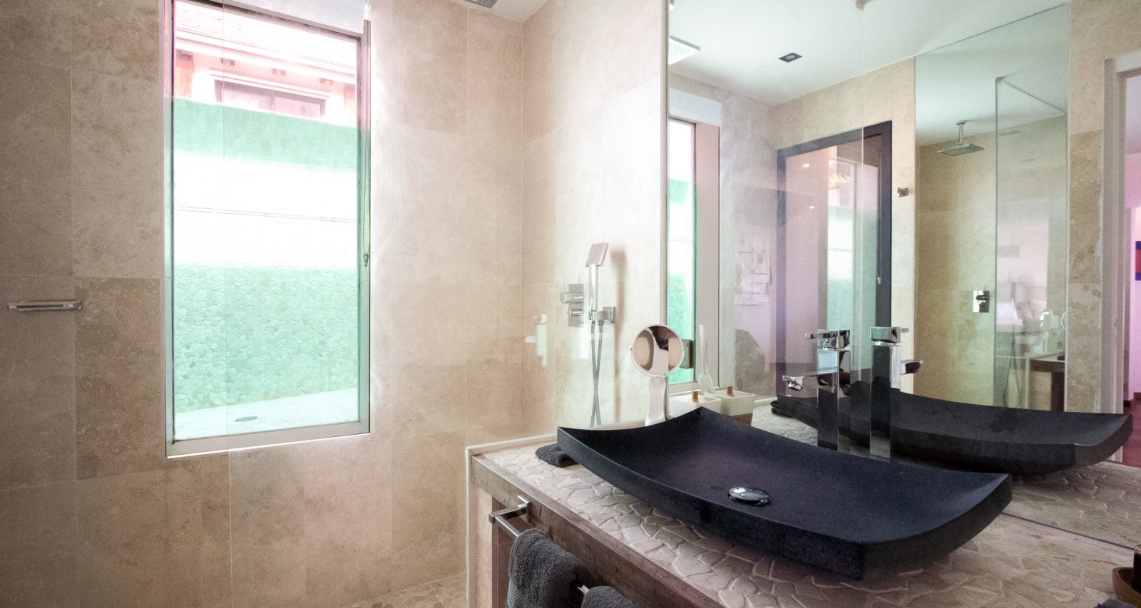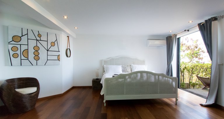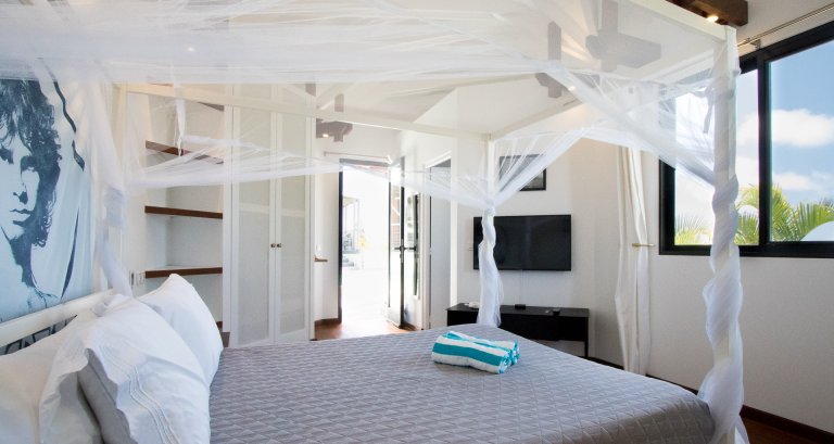 The flexible layout makes Villa Kaya (KYA) accommodating for groups of friends or extended families who want to share a house with ample spaces for socializing during the afternoons and evenings but with well-separated, private sleeping quarters to retreat into when it’s time to be quiet and still. As the spaces are organized around the pool and several outdoor lounge areas, the house is easy to navigate. Even when all three bedrooms are used, the feeling remains intimate.