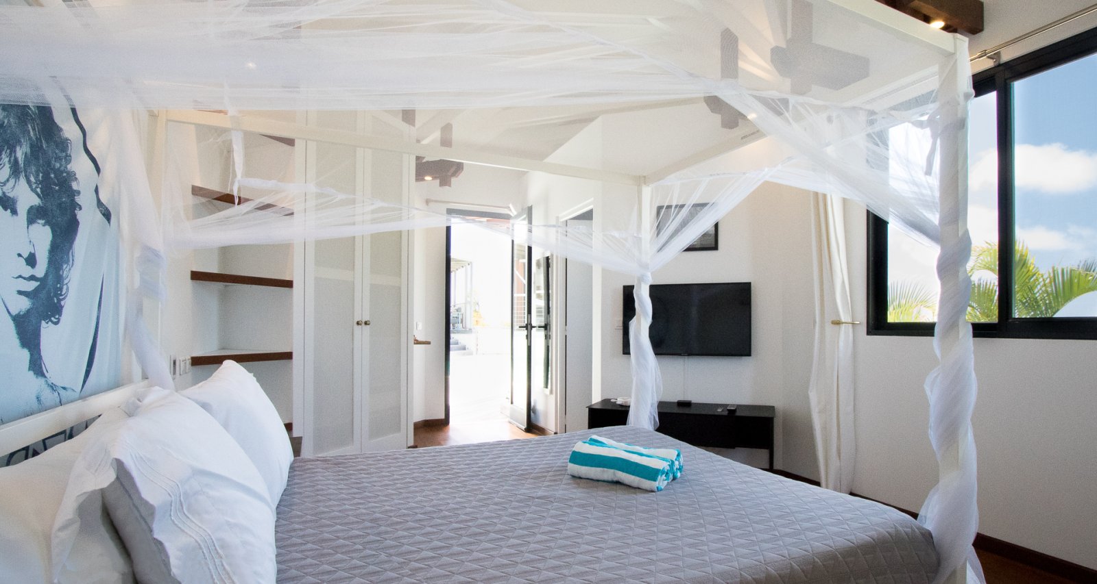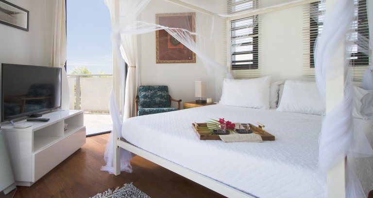 Bed: Queen Bed • En-Suite Bath with Shower • Flat-Screen, High Definition, Apple TV Service TV • DVD Player • Safe • 110 Voltage • Hair Dryer • Ocean View