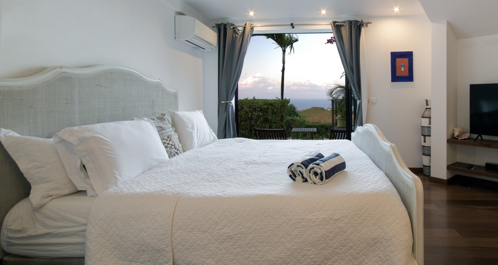 Bed: King Bed • En-Suite Bath with Shower • Flat-Screen, High Definition, Apple TV Service TV • DVD Player • Safe • 110 Voltage • Hair Dryer