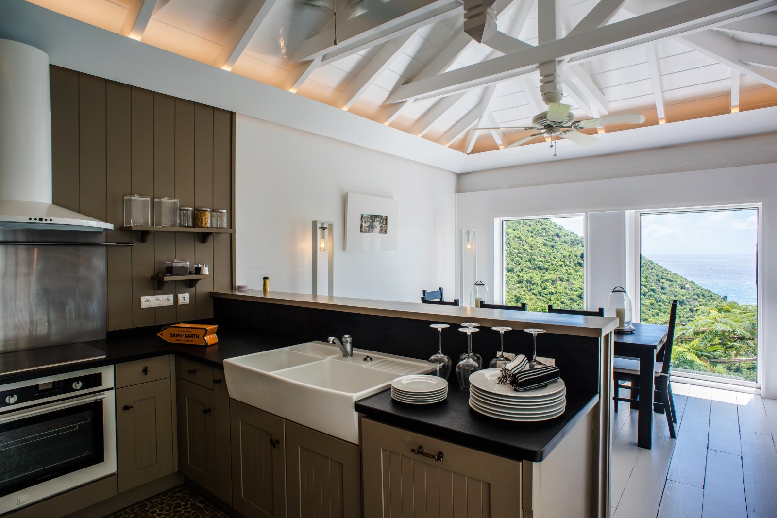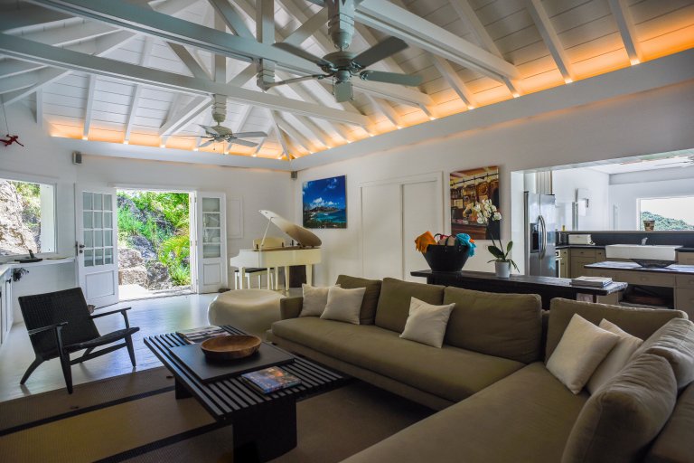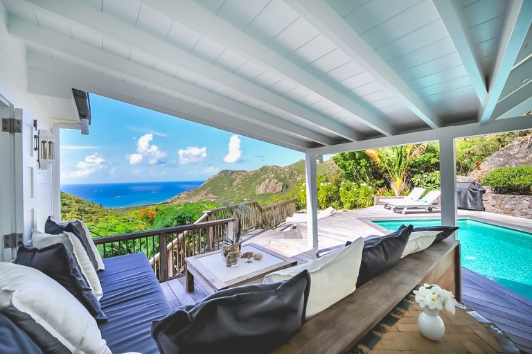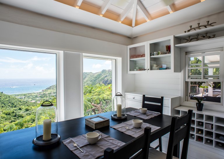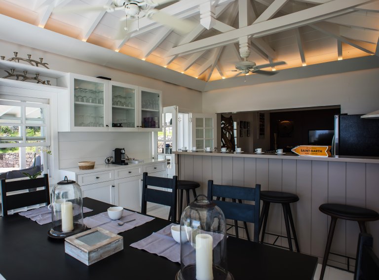 Kiara House (MEM) brings to St. Barth a rare touch of design inspiration that sets it apart from the crowd. Blonde-wood flooring, blue-painted wainscoting and an eclectic blend of the modern and the vintage give this remarkable villa a Hamptons feel that has made it a favorite among many American guests. Located high in Vitet overlooking the valley of Grand Fond and the Caribbean Sea, Kiara House offers a relaxed atmosphere ideal for making the most of your break from a cold, northern winter.